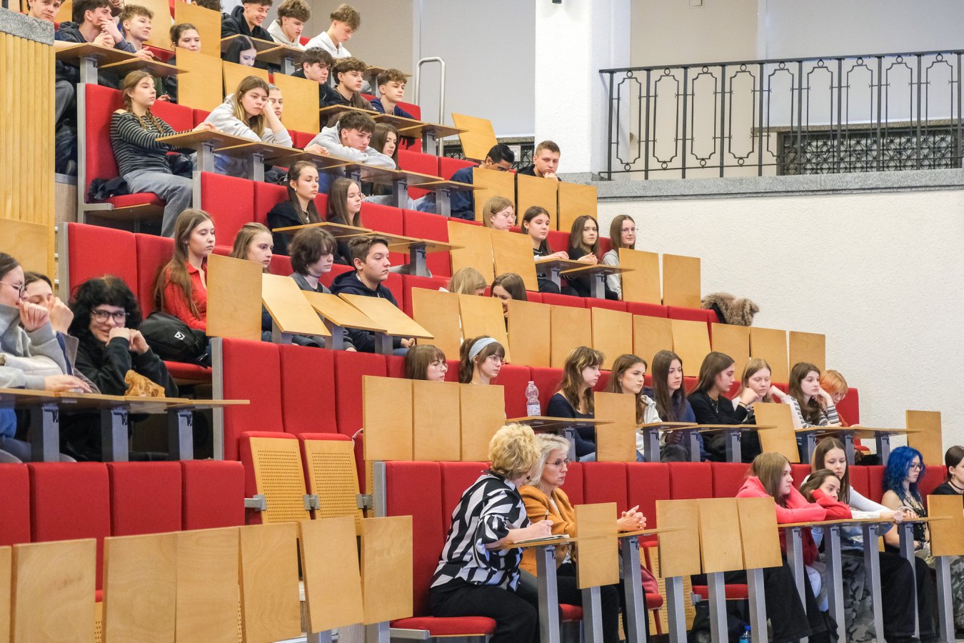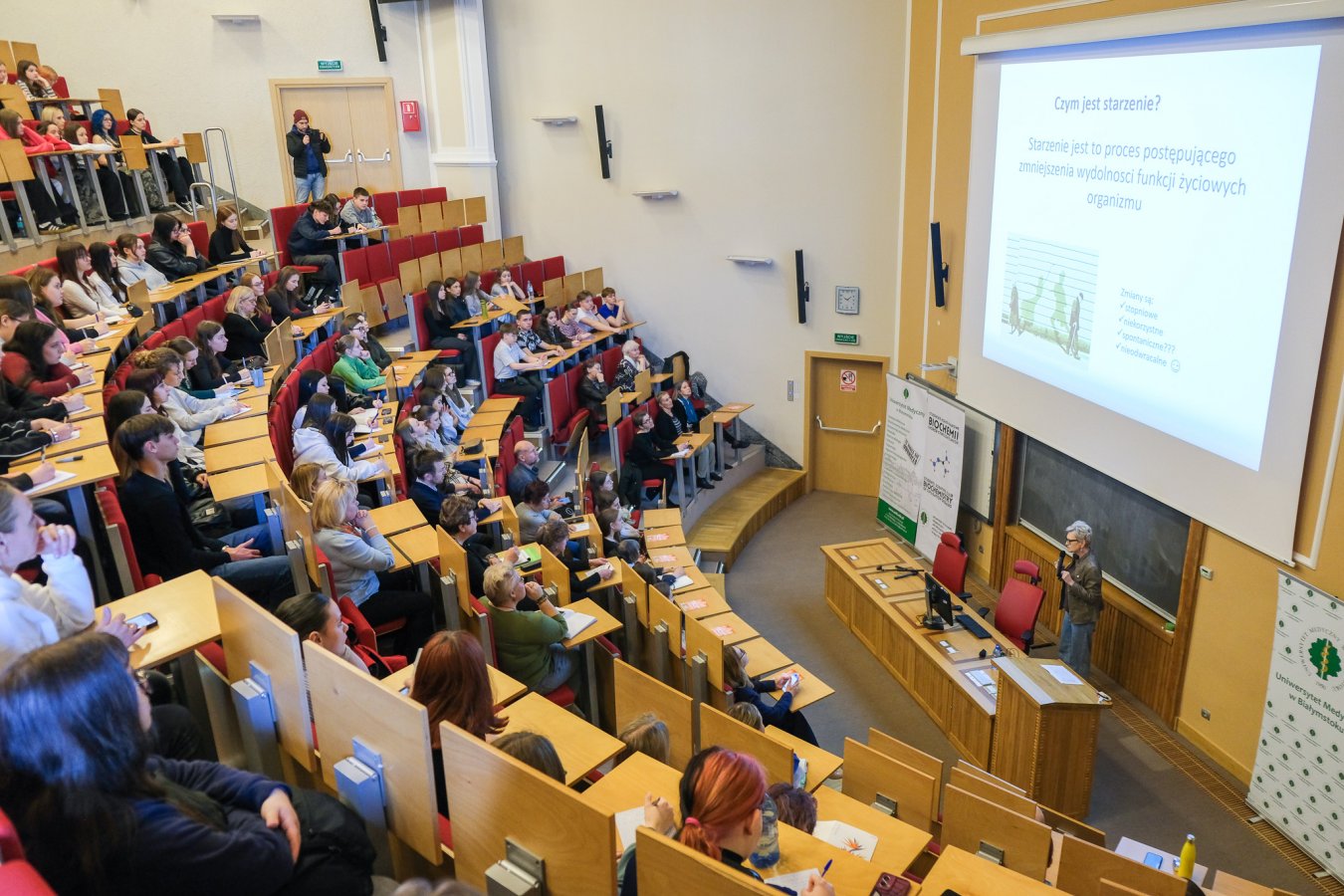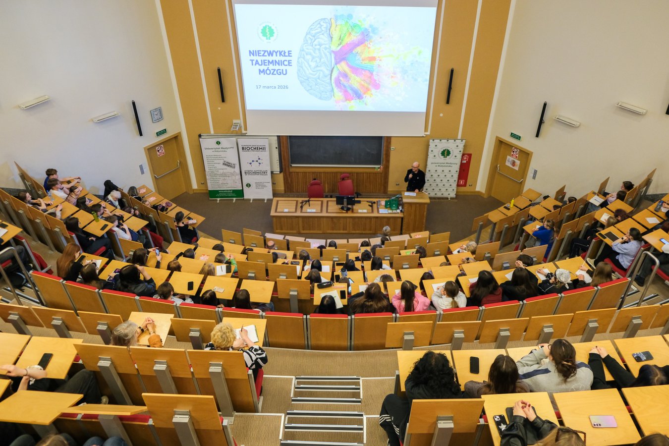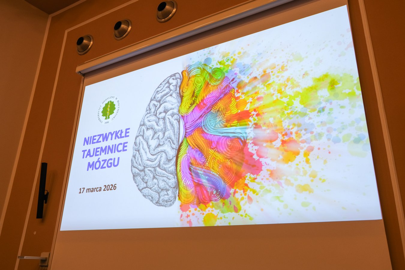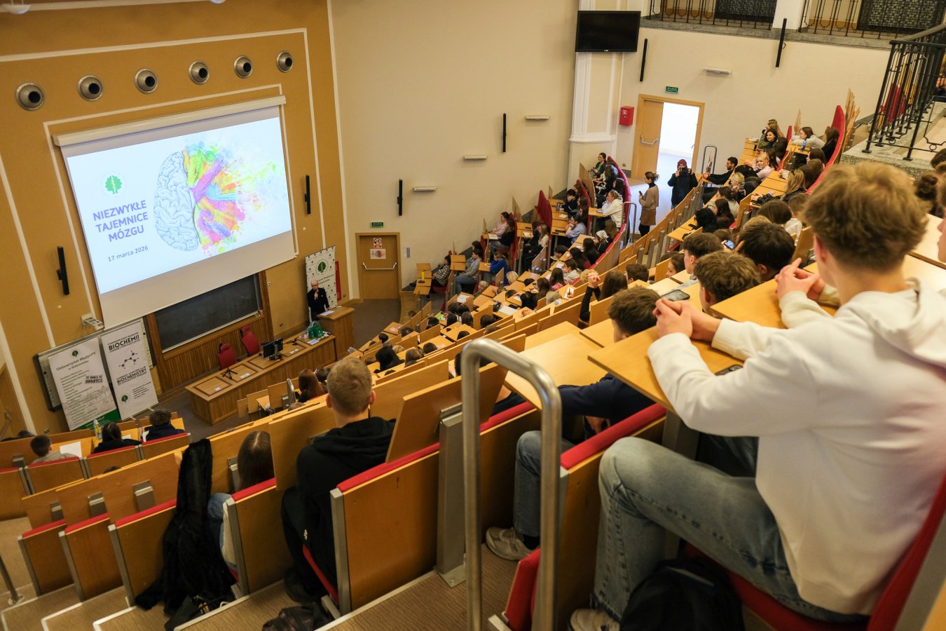 UMB, razem z Polskim Towarzystwem Higienicznym, obchodzi Europejski Tydzień Mózgu. Z tej okazji przygotowano serię wykładów popularnonaukowych z zakresu neuronauki pod hasłem „Niezwykłe tajemnice mózgu”. Spotkanie odbyło się w Collegium Universum (17 marca 2026 r.). Przyjechali na nie uczniowie szkół średnich z Augustowa, Białegostoku i Grajewa. A że w wykładach mógł uczestniczyć każdy, byli więc również studenci UMB oraz spora grupa seniorów.
