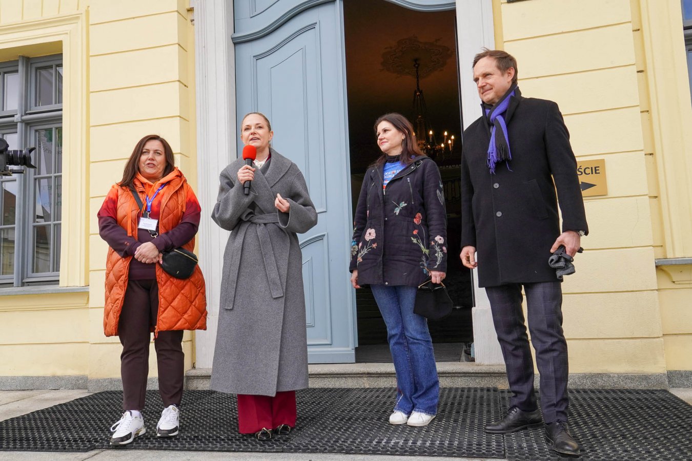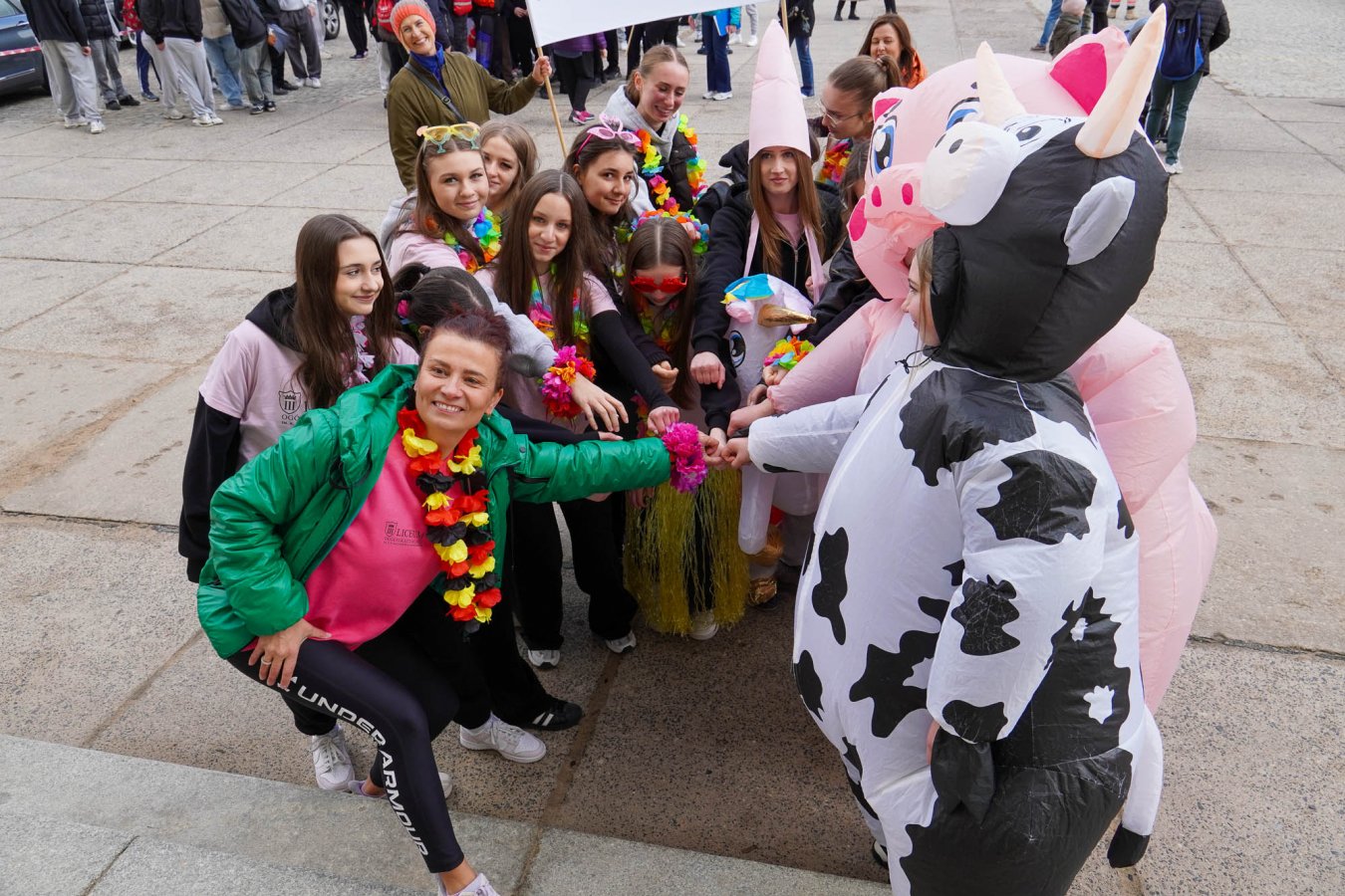 Rektor Moniuszko przywitał uczestników na dziedzińcu Pałacu Branickich wspólnie z wizytującą tego dnia Uniwersytecki Szpital Kliniczny Wiceminister zdrowia Katarzyną Kęcką, która także zwróciła się do uczestników z apelem o zdrowy tryb życia.