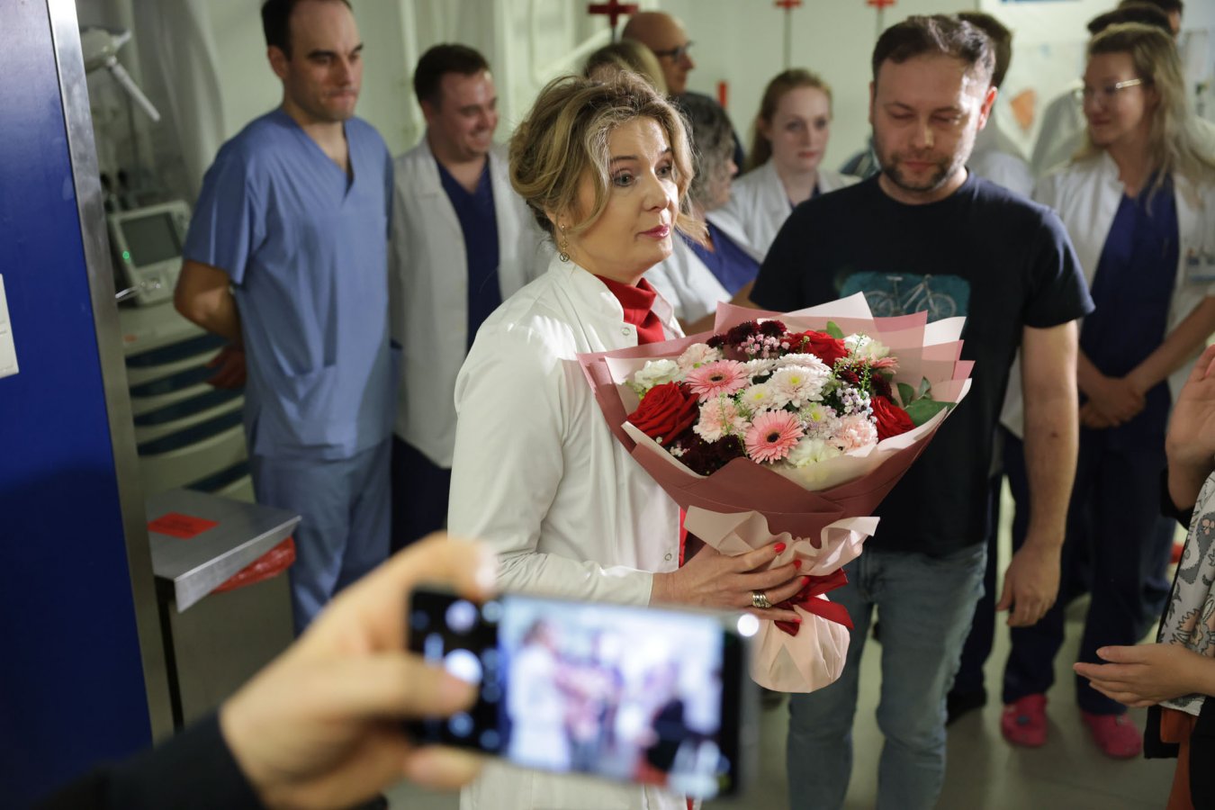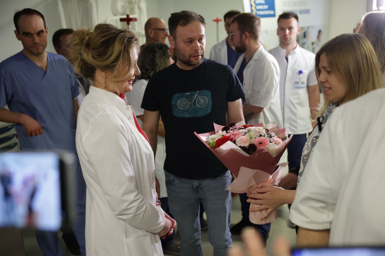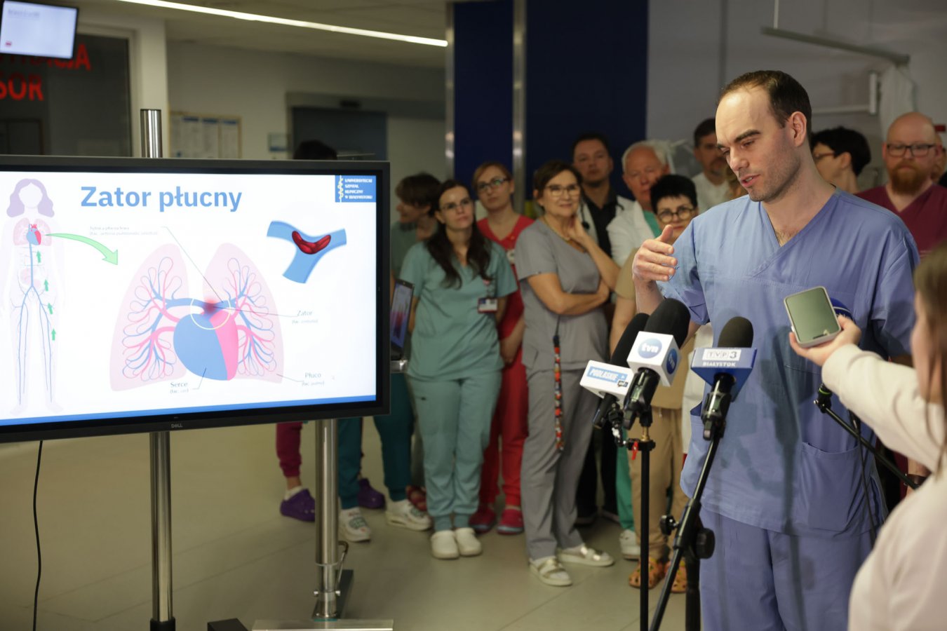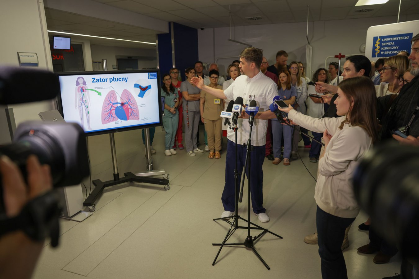 Pacjentka była we wstrząsie krwotocznym, we wstrząsie obturacyjnym – mówił podczas konferencji prasowej dr Sławomir Czaban - kierownik Kliniki Anestezjologii i Intensywnej Terapii z Blokiem Operacyjnym. Pani otrzymała kilkukrotną transfuzję wymienną. Mój zespół Kliniki Anestezjologii skoncentrowany był na tym, przy utrzymać pacjentkę przy życiu, ale też na stabilizacji układu hemostazy, opanowaniu zaburzenia krzepnięcia i uzupełnieniu niedoborów krwi krążącej. W Pani nie krąży ani kropla własnej krwi, dostała jej Pani tyle, że można byłoby obdzielić kilka osób.