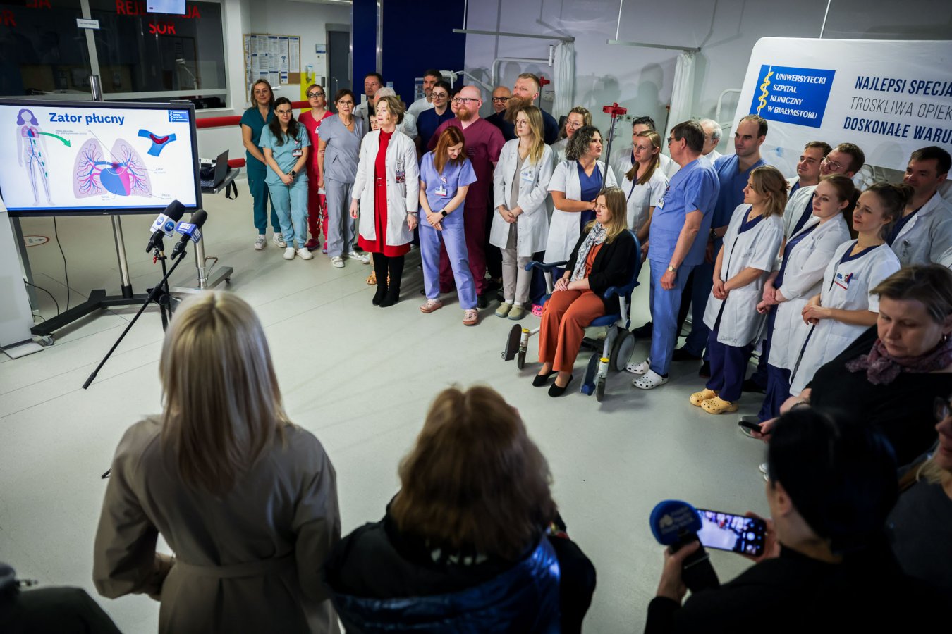 Ta walka o życie pacjentki była bardzo heroiczna – mówiła podczas dzisiejszej konferencji prasowej (1 kwietnia 2026 r.) dr Marzena Wojewódzka-Żelezniakowicz - kierownik SOR, zastępca dyrektora USK ds. lecznictwa. Pacjentka, która miała ogromną wolę życia, i zespół, który się nie poddawał. Wykorzystaliśmy wszystkie techniki, wszystkie nowoczesne metody leczenia, które są dostępne w naszym szpitalu. Dzięki temu możemy mówić o sukcesie. Nasza pacjentka przeżyła, żyje człowiek, kobieta, mama, żona. Zespół naszego szpitala potrafił zareagować we właściwy sposób na każdym etapie leczenia.