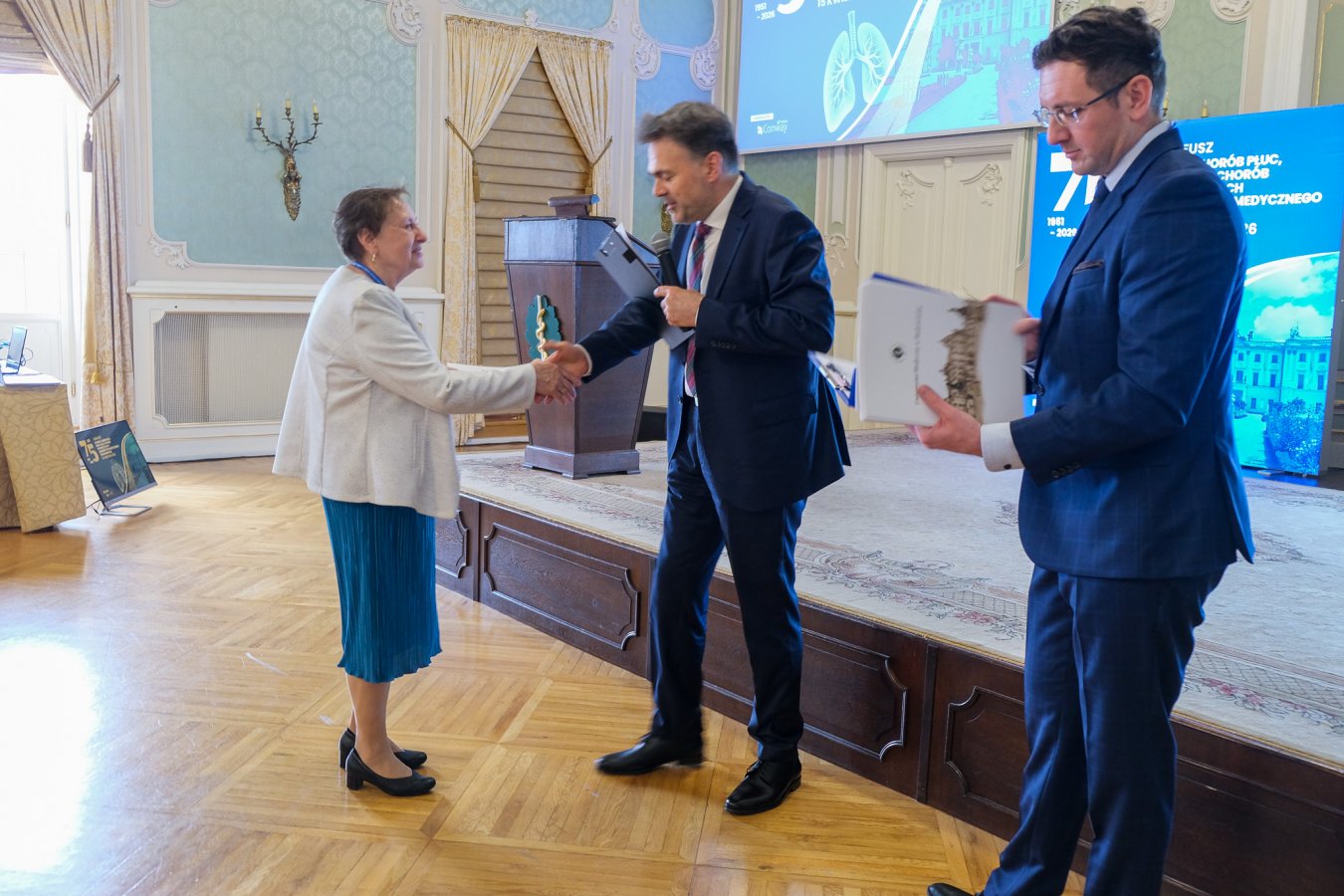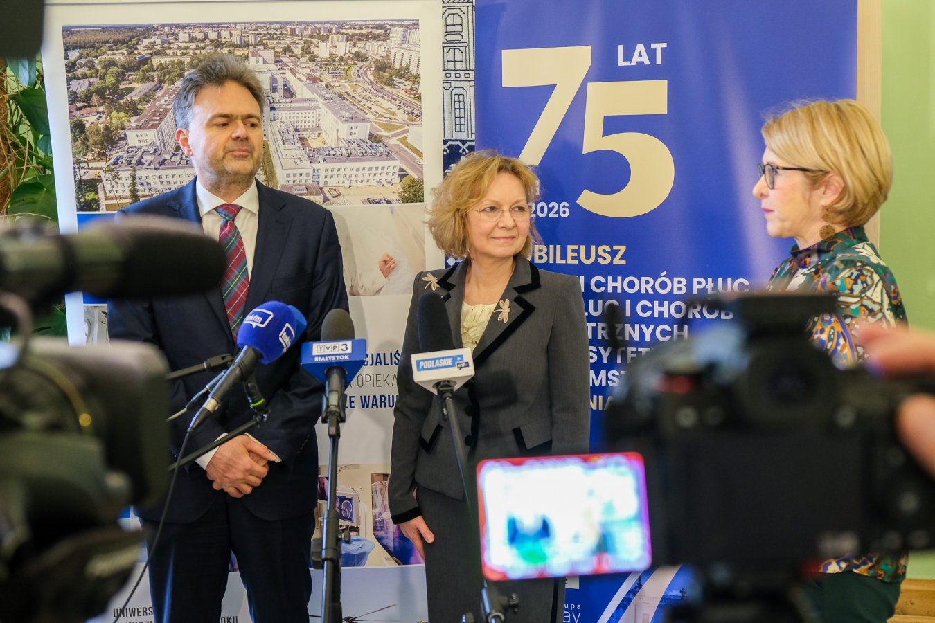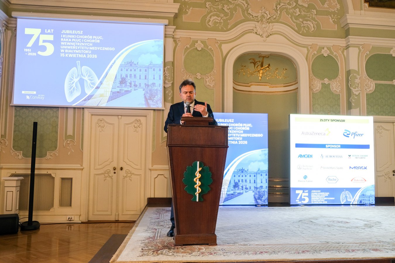 W środę (15 kwietnia 2026 r.) w Auli Magna Pałacu Branickich uroczyście obchodzono jubileusz powstania Kliniki. Z tej okazji zorganizowano konferencję naukową pod tytułem „Pacjent chory na raka płuca w sieci chorób współistniejących - historia, teraźniejszość, przyszłość”. Pierwszy panel spotkania poświęcony został właśnie historii jednostki, ale też ludzi ją tworzących. Pracownicy z najdłuższym stażem zawodowym oraz emeryci, zasłużeni Klinice, zostali wyróżnieni specjalnymi dyplomami.