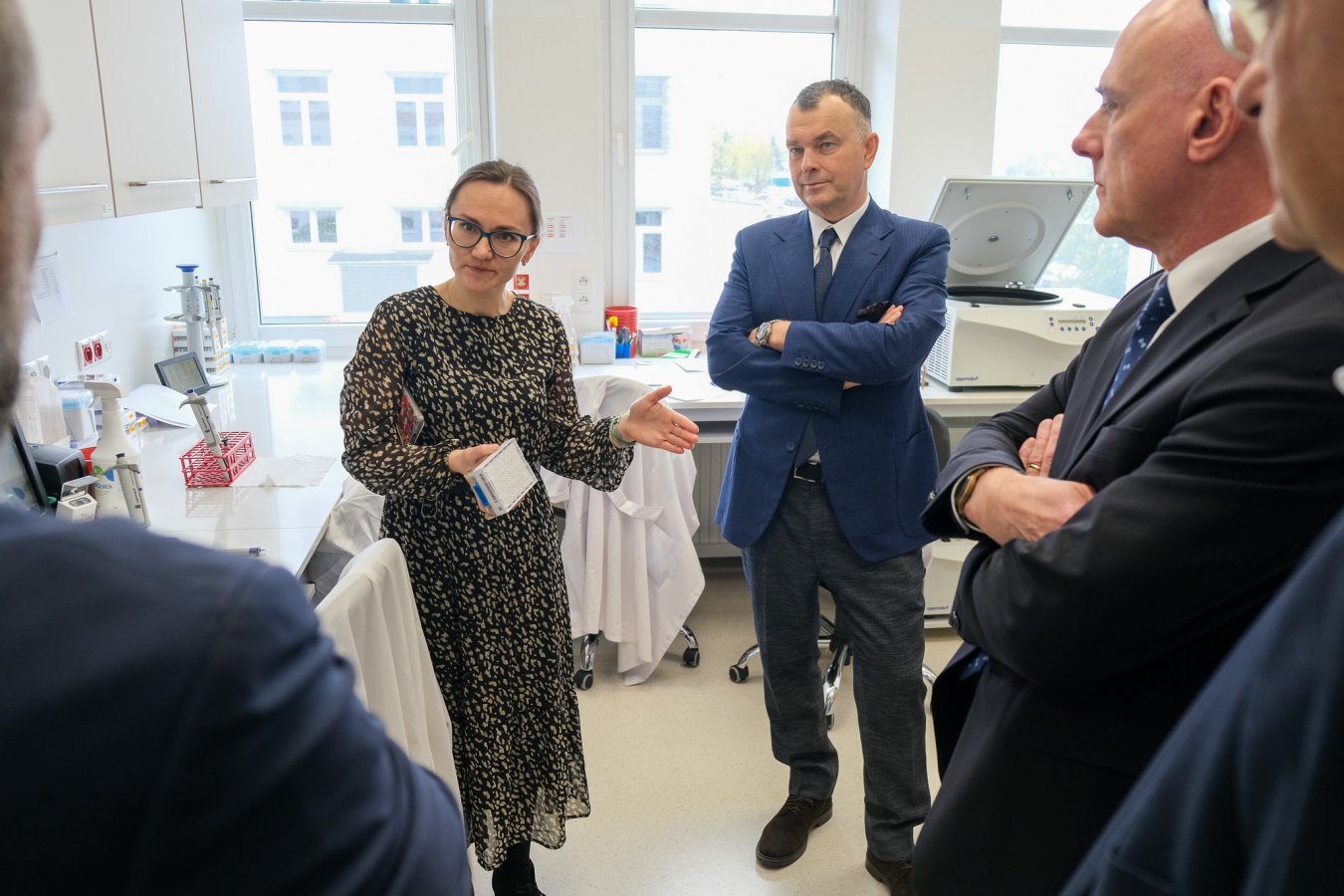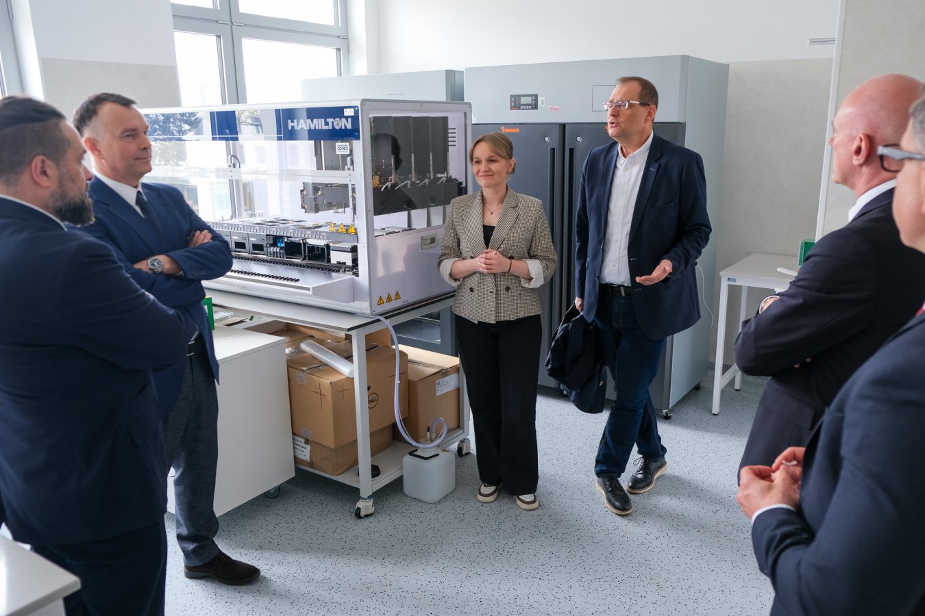 Gości oprowadzał prof. Adam Krętowski, Prorektor ds. medycyny cyfrowej i badań klinicznych UMB. Na liście do zobaczenia były: Laboratorium Obrazowania Molekularnego i sąsiadujące z nim Centrum Radiofarmacji, zupełna nowość w UMB - Centrum Badań Funkcjonalnych (znajduje się tu m.in. hodowla ryb Danio Reiro), Biobank (z pierwszym w Europie robotem biobankującym), Centrum Futuri (tu goście zobaczyli laboratoria genomiczne, a także pokazano, jak realizowane jest największe w tej części Europy badanie kohorotwe Białystok Plus). W Ośrodku Wspierania Badań Klinicznych zaprezentowane zostały otwarte niedawno pierwsze w Polsce komory metaboliczne. Potem była wizyta w nowym Centrum Bioinformatyki i Biostatystyki Klinicznej (tu omówione zostało funkcjonowanie laboratorium metabolomicznego). Ostatnim punktem zwiedzania UMB była wizyta na budowie Centrum Dydaktyczno-Egzaminacyjnego „Abecadło Medycyny”.