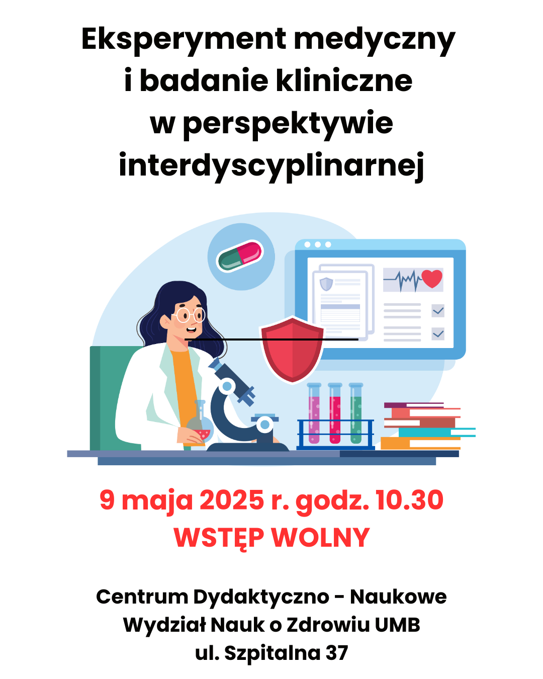 Zakład Prawa Medycznego i Deontologii Lekarskiej Uniwersytetu Medycznego w Białymstoku zaprasza na bezpłatne seminarium z prawa medycznego: „Eksperyment medyczny i badanie kliniczne w perspektywie interdyscyplinarnej”.
