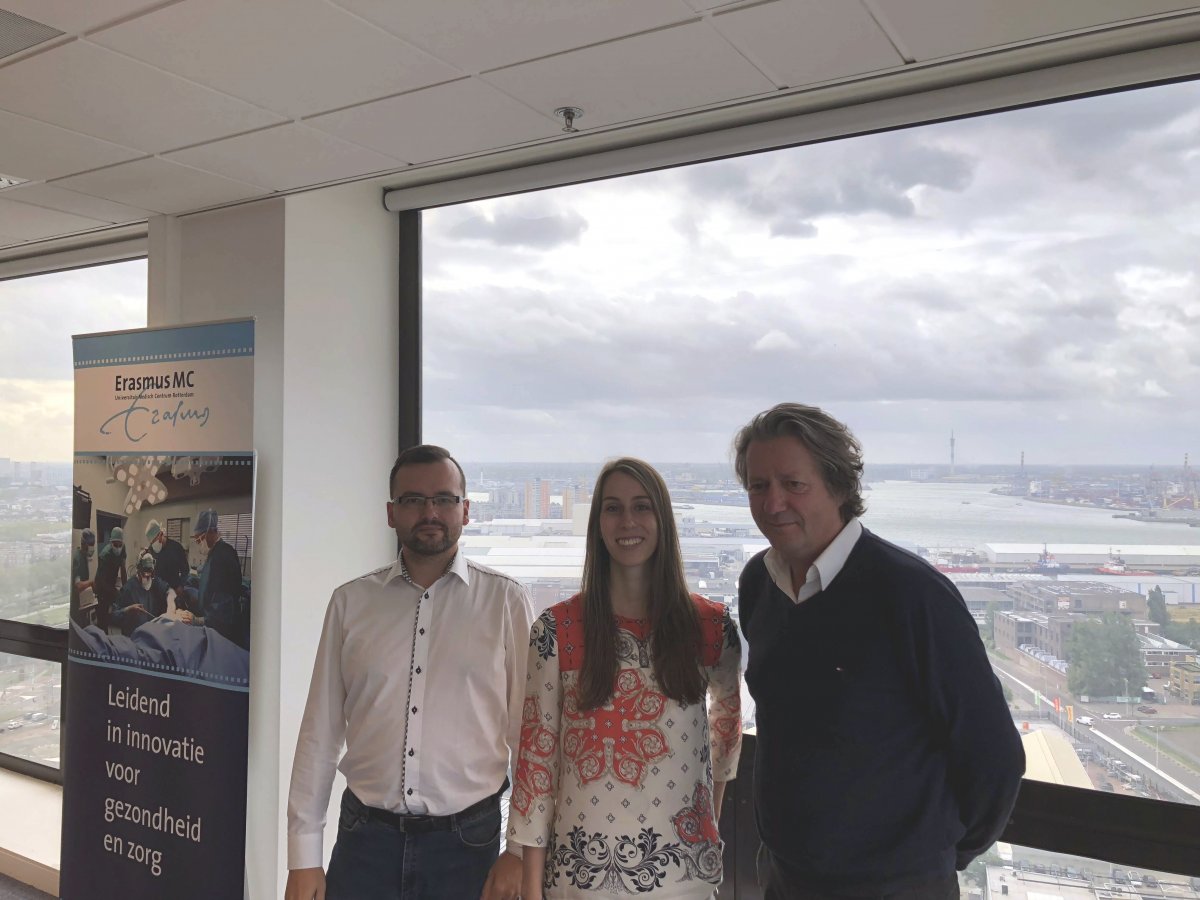 Wizyta studyjna była okazją do wymiany doświadczeń, wiedzy i dobrych praktyk w zakresie transferu technologii w naukach medycznych. Zespół BTT UMB zapoznał się ze strukturą organizacyjną, modelem zarządzania i procesem transferu technologii na Erasmus MC. Erasmus MC to wydzielona jednostka Uniwersytetu Erasmusa w Roterdamie. W jednej jednostce organizacyjnej skupione są funkcje naukowe i dydaktyczne oraz działalność lecznicza. Zespół CTT Erasmus MC to ponad 20 osób, do zadań których należy wspomaganie swojej społeczności w komercjalizacji innowacyjnych pomysłów. W ramach Erasmus MC działa również inkubator przedsiębiorczości, który wspiera uczelniane spin-offy. Jego zadaniem jest oferowanie powierzchni biurowej i laboratoryjnej, jak również doradzanie w kwestiach merytorycznych przy rozwoju spółki.