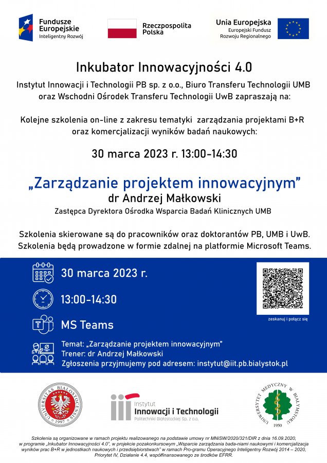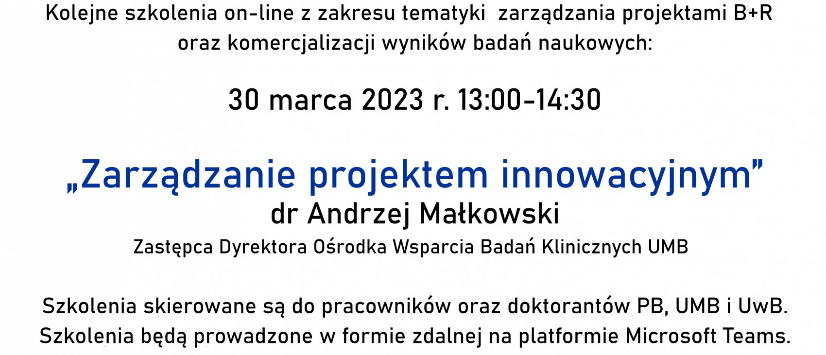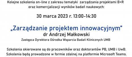 Zapraszamy pracowników oraz doktorantów UMB do wzięcia udziału w szkoleniu pt. Zarządzanie projektem innowacyjnym.