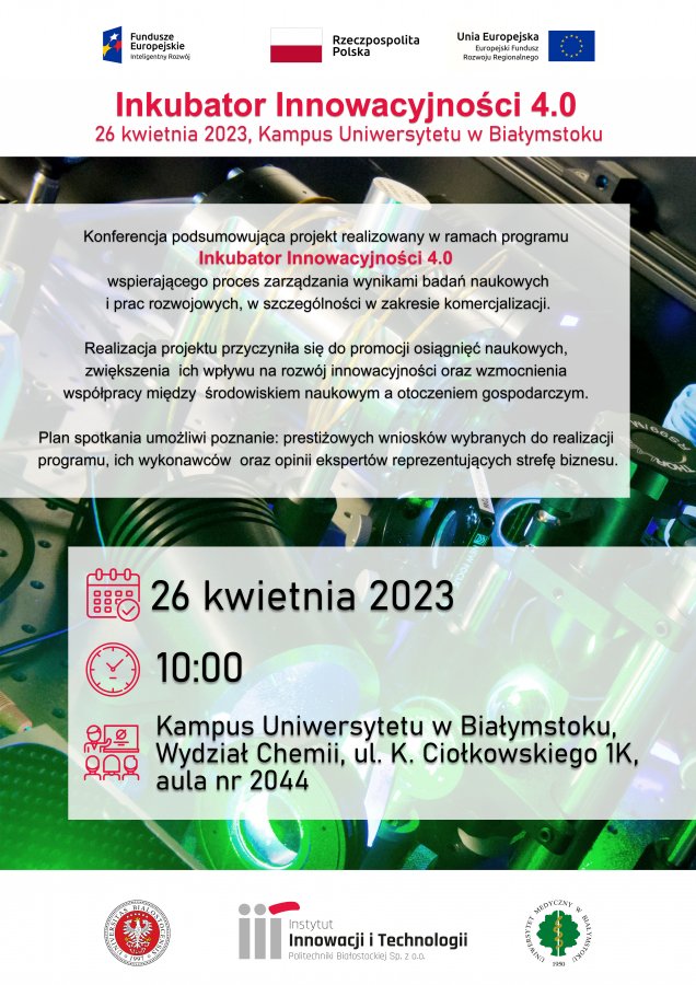 Serdecznie zapraszamy do wzięcia udziału w konferencji podsumowującej program ,,Inkubator Innowacyjności 4.0".