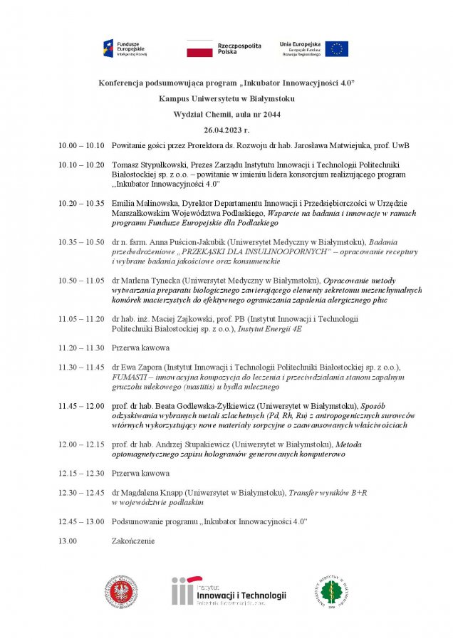Wydarzenie odbędzie się 26 kwietnia 2023 w godzinach 10.00-13.00 na Kampusie Uniwersytetu w Białymstoku, na Wydziale Chemii (aula 2044).
