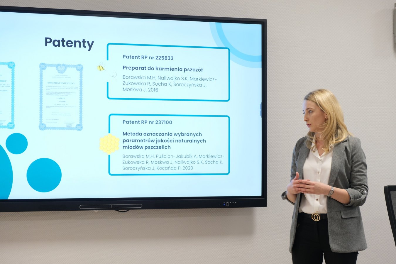 Wydarzenie otworzyła prof. Katarzyna Socha, Prorektor ds. Rozwoju i Współpracy z Otoczeniem Gospodarczym, ale też naukowiec kierujący Zakładem Bromatologii, który ma największe na Uczelni doświadczenie, jeśli chodzi o komercjalizację nauki. Do Zakładu zgłosili się przedsiębiorcy, którzy kupili tam receptury na zdrowe przekąski, przepis na wafelki do lodów, a także opracowania naukowe produktów pochodzenia roślinnego, czy preparatów pszczelich. Część z tych produktów kupujemy już w sklepach (jeden pod marką bardzo znanej influenserki).