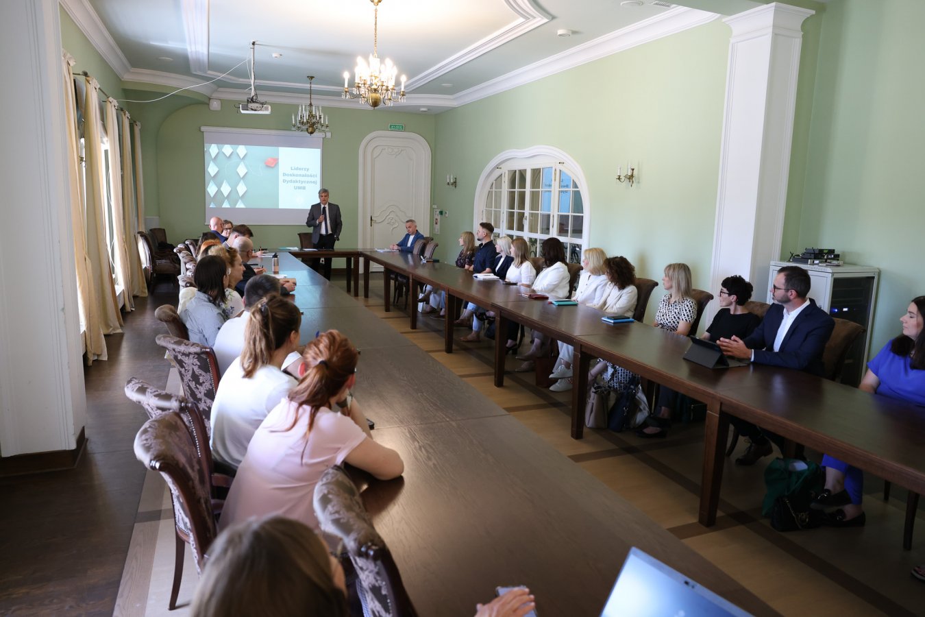 W ramach Posiedzenia przedstawiono wyniki konkursu na Liderów Doskonałości Dydaktycznej i Cyfrowej – osoby wyłonione w konkursie otrzymały oficjalne gratulacje oraz indywidualne wyróżnienia. Liderzy zostaną objęci wsparciem w zakresie dedykowanych działań projektowych, których szczegóły zaprezentował Dział Projektów Pomocowych (DPP). Marek Sokołowski przedstawił zasady udziału Liderów w projekcie „Od Adepta do Lidera”. Celem projektu jest rozwój kompetencji i kwalifikacji dydaktycznych, cyfrowych i na rzecz zielonej transformacji. Więcej informacji na temat projektu znajduje się na stronie internetowej DPP: https://www.umb.edu.pl/adel/kadra_dydaktyczna_umb/premium