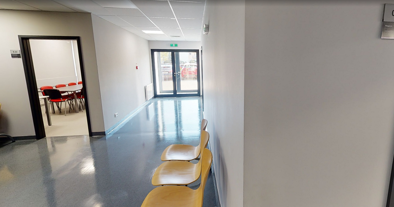 Pozostałe sale symulacyjne tj.: Sala Pielęgniarstwa Wysokiej Wierności, Pracownia Rzeczywistości Wirtualnej, Pracownia Komuterowego Wspomagania Nauczania, Pracownia ALS/BLS, Pracownia Umiejętności Technicznych, Sala ćwiczeń z Pacjentem Standaryzowanym oraz Sale Egzaminacyjne znajdują się na pierwszym piętrze po prawej stronie od windy. Drzwi do nich mają szerokość około 1,20 m, nie mają progu. Drzwi nie otwierają się automatycznie, ale ich otwarcie nie wymaga dużej siły.