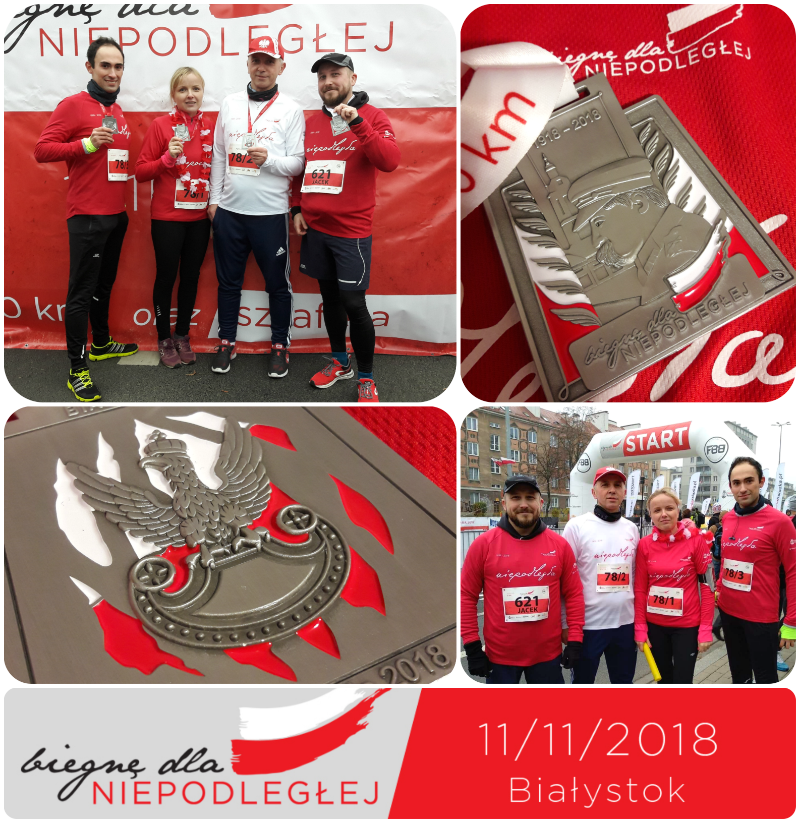 W dniu stulecia odzyskania niepodległości, pomimo bardzo niesprzyjającej aury przedstawiciele naszego działu wzięli udział w imprezie biegowej pt. Biegnę dla Niepodległej organizowanej przez Fundację Białystok Biega. Bieg na dystanie 10 km pokonaliśmy zarówno w sztafecie (Monika Siemion, Marek Sokołowski, Łukasz Lepionka) jak i indywidualnie (Jacek Bezubik). Naprawdę było warto!!