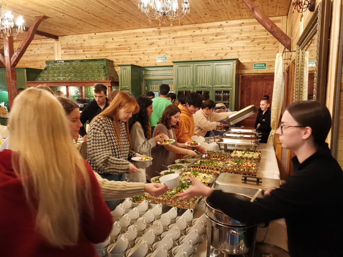 On Saturday, October 15, 2022, the 2nd International Sightseeing Day took place. Together, we heard a bit about the history of the Branicki family and Białystok and saw its most important points. After the bus ride to Supraśl we ate delicious regional dumplings and then Brother Jan showed us around the Monastery and the Winter Temple, telling us about the combination of Catholicism and Orthodoxy in the architecture of this unique place. Then we took a pleasant sunny walk along the boulevards by the river and around the town, and then the Pięć Dębów hotel hosted us with a regional feast. Our integration was completed with dance games and music performances. Thank you for having fun together!