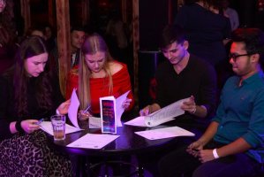 The evening began with the "Name that tune" competition, in which anyone who guessed the song could win double invitations to the Helios cinema.