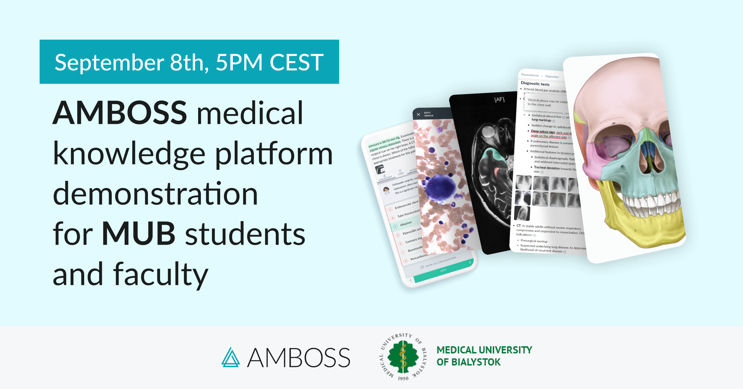 The webinar will be conducted by a representative of AMBOSS GMBH exclusively for the Medical University of Bialystok and is dedicated to students and employees of our university.