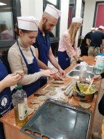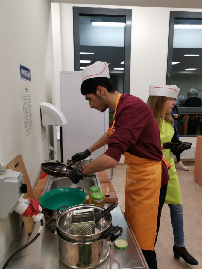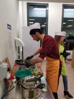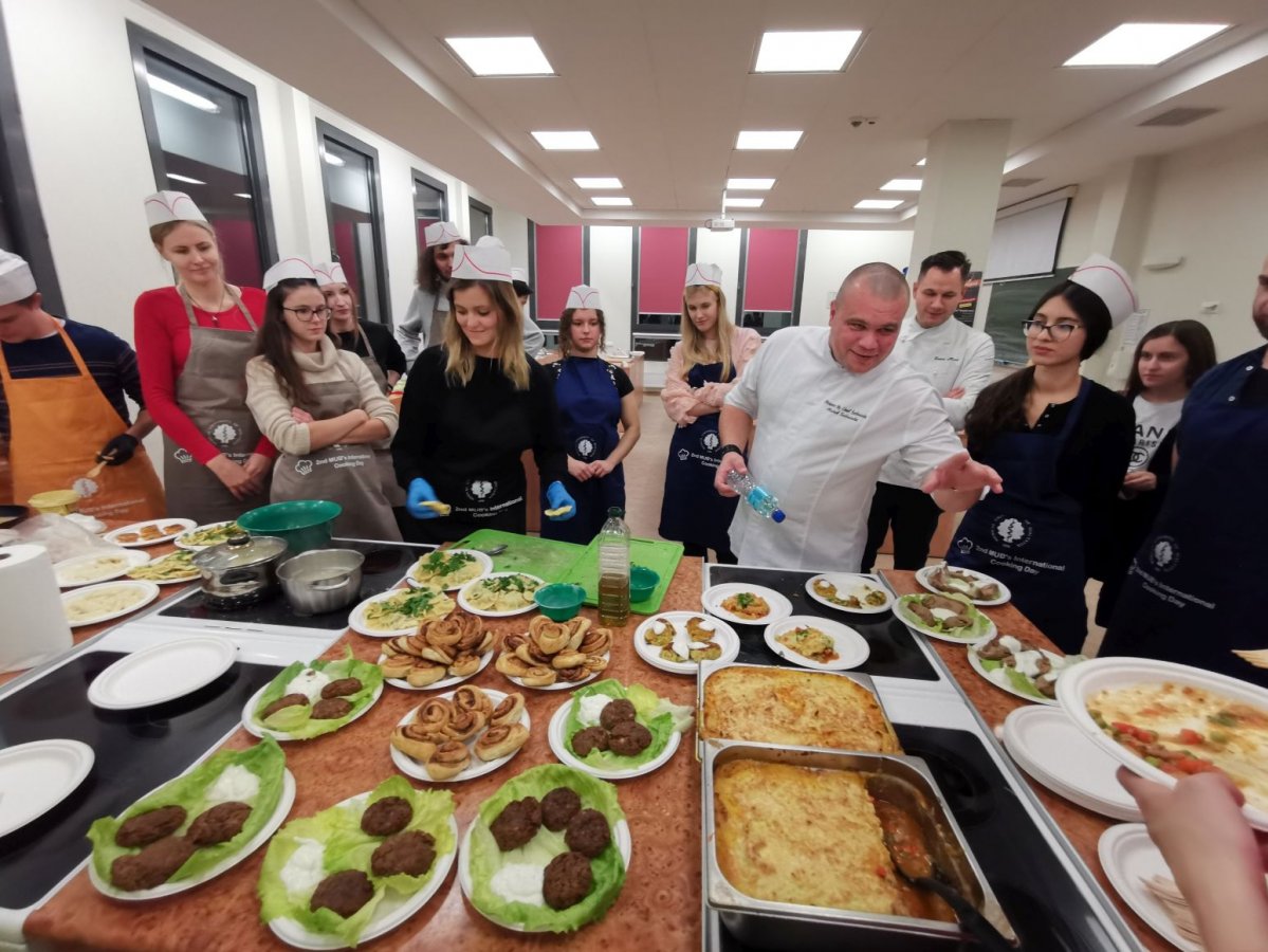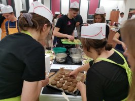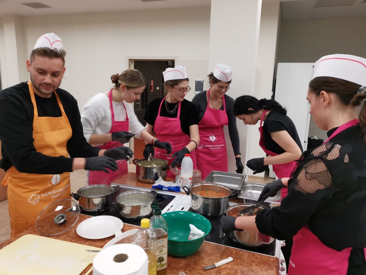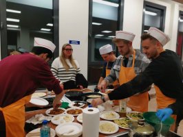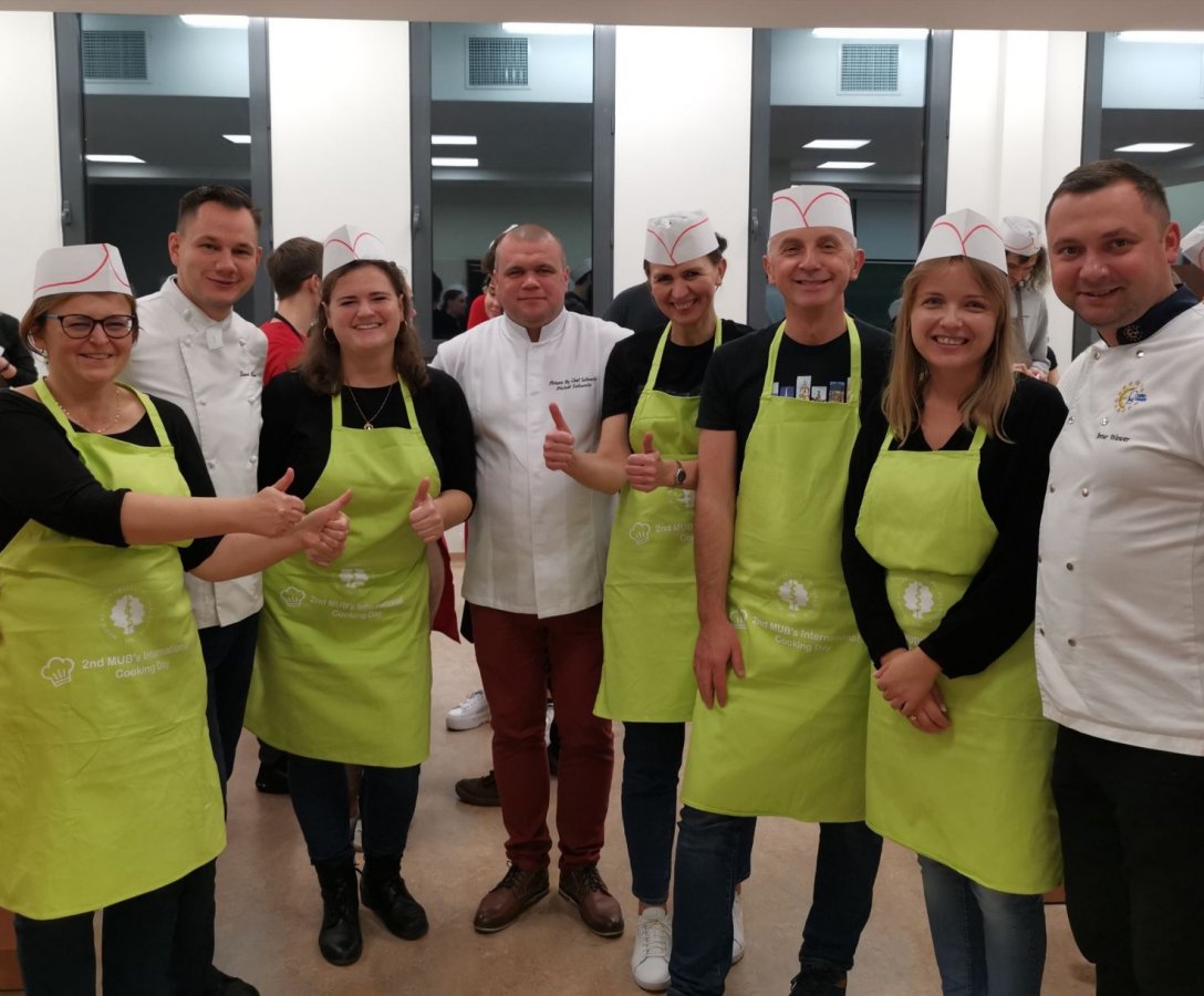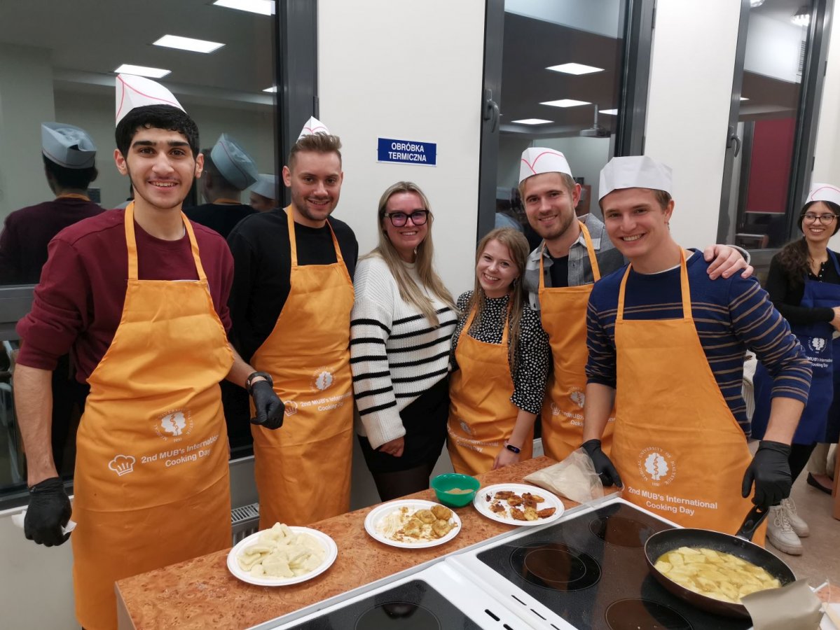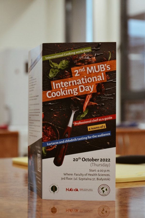 On October 20th, 2022 the 2nd MUB's International Cooking Day took place. It was another of the events co-financed by the Polish National Agency for Academic Exchange (NAWA) aimed at integrating foreign students with the community of the Medical University in Białystok. The six teams preparing dishes from different countries included both Polish and foreign students, as well as MUB employees. The teams selected the dishes to be prepared, and then, following the instructions in English and the recommendations of professional chefs, they made every effort to prepare the most delicious dishes. The end of the fruitful work was the joint tasting of the prepared delicacies.