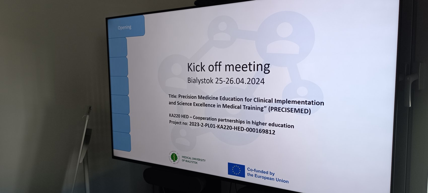On April 25-26, 2024, the Medical University of Bialystok (MUB) hosted the kick-off meeting connected with implementation of the project entitled: "Precision Medicine Education for Clinical Implementation and Scientific Excellence in Medical Training" (acronym "PRECISEMED"), carried out as part of the Cooperation partnerships in Higher Education action under the Erasmus+ 2021-2027 programme.