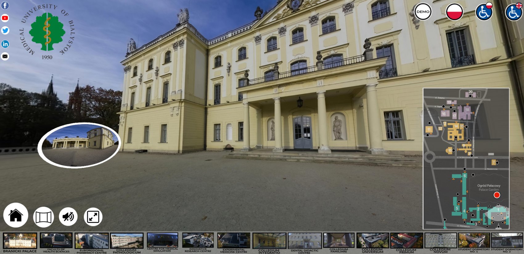Since then, international students, potential candidates for English-language studies and their parents, international professors, as well as the Polish-speaking academic community of the Medical University of Bialystok have been able to use this innovative tool. Thanks to the virtual walk, they can view the most important university buildings and the campus from anywhere in the world.