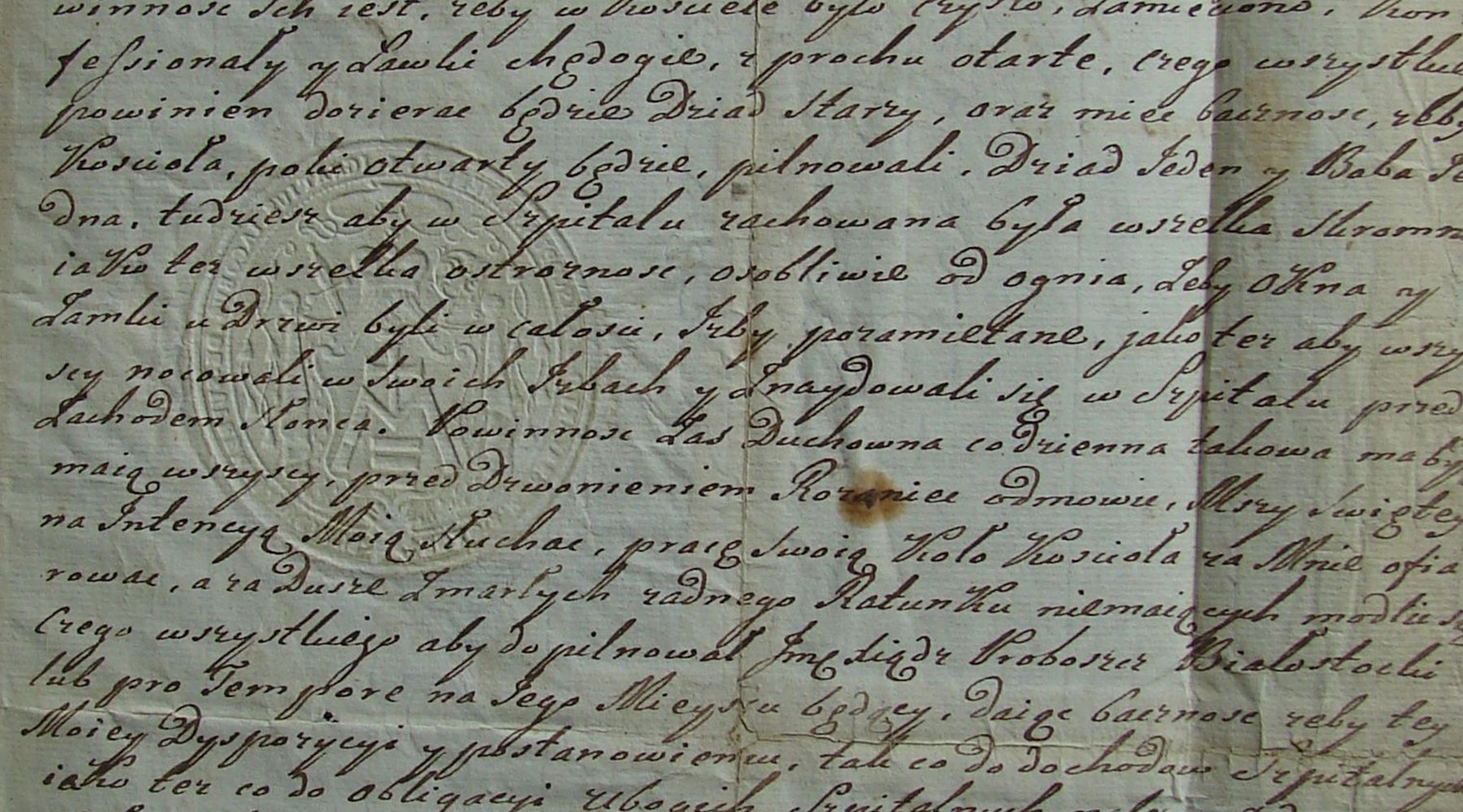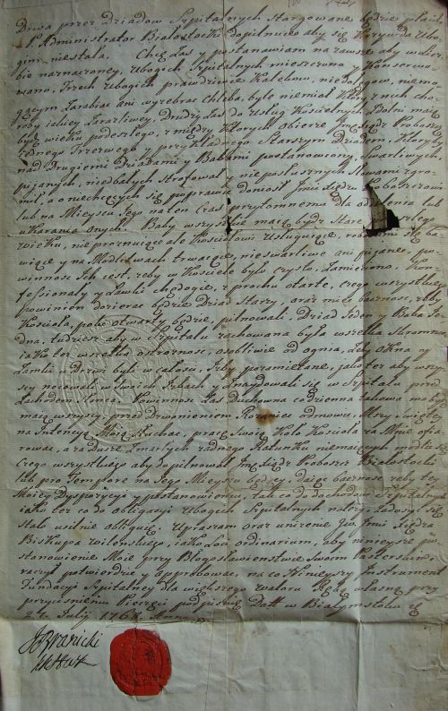 See more...The existing parish hospital, located in today’s Ton Cinema building, received more equipment. Three extremely poor, crippled people, flops, those unable to earn money or to beg for bread were admitted to the hospital – as long as none of them had an infectious disease, while those capable of delivering service for the church were supposed to be of old age [...] All the women were expected to be old, elderly, not vain. In 1768, the Branicki family also founded the Sisters of Mercy monastery with an infirmary for 12 patients. Five sisters capable of minding the sick, who they would care for, give them food and medicine, draw their blood, dress their wounds and giving them with all attention were brought to the monastery. In the Jewish district, commander Branicki set up a hospital reporting to the Jewish religious community.