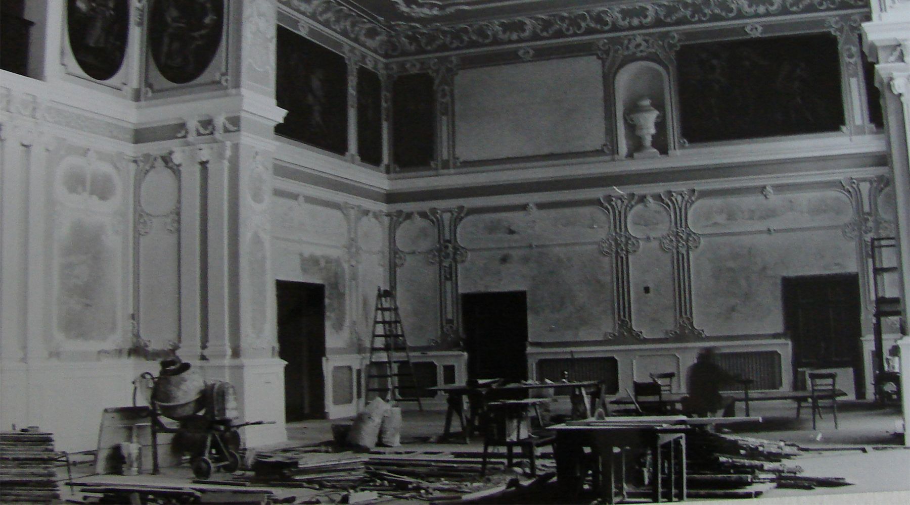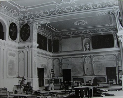 See more...In the nineteenth century, the Baroque decorations and parts of the walls were removed for the needs of the Institute of Noble Maidens, and one large hall was developed as a result. Its size has remained unchanged since. However, the Baroque decorations were not restored until the 1990s. Renovation works have been going on since 1987. On the basis of the Baroque patterns and photographic documentation, the eighteenth-century decoration of the Palace chapel was reinstated. The altar is adorned with paintings by Grzegorz Klimowicz and Igor Jańczuk. Renovation works were pending in the Auditorium at the same time, where the arrangement was based on Rococo convention. Pseudo-historical paintings were produced for the Auditorium by Dorota and Jerzy Łabanowski. The ceremonial opening of the renovated rooms took place in October 1990, during the inauguration of the academic year.