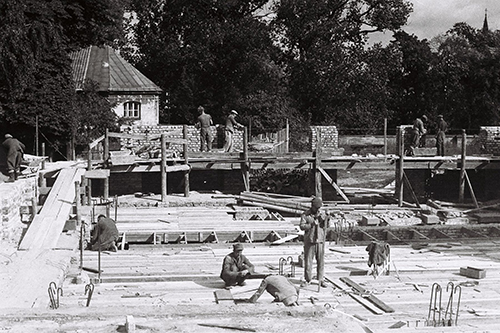 To enlarge the school area, construction of new Departments started in 1951 for teaching theory of science – today, this is the Collegium Universum at ul. Mickiewicza 2. Residence Hall No. 1 was built in the neighborhood. In the initial years, students of the Białystok University were accommodated in provisional rooms in the left wing of the Palace, the Collegium Primum building and the School of Nursing. A temporary canteen and a student dayroom were set up at Collegium Primum. The designer of both buildings was Andrzej Nitsch, an engineer architect from Krakow, one of the leading figures in Polish healthcare architecture.