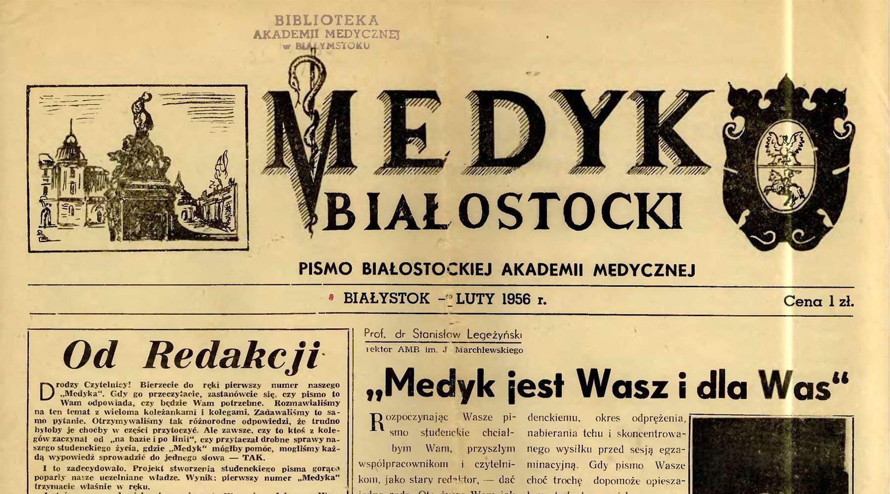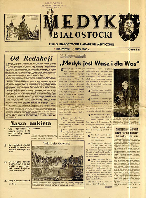 See more...The first issue of Medyk Białostocki was published in February 1956, and Henryk Miksza, a third year student of the MAB, became the editor-in-chief. But the first publishing effort did not last long, despite the commitment of the editorial team and the vast diversity of interesting topics covered. Only four issues came to light. The 2000 anniversary, Half a Century of the Medical Academy of Bialystok,was an opportunity to revive the publishing tradition, and Medyk Białostocki was resumed. Professor Krzysztof Worowski was one of the key initiators and the editor-in-chief. 2002 was another milestone in the history of the magazine. The Rector, Prof. Jan Górski, entrusted the position of Editor-in-Chief to Prof. Lech Chyczewski . The formula, layout and publishing interval changed, and a monthly magazine was now published instead of the Medyk quarterly. Marcin Tomkiel has held his editor-in-chief position since 2017. 173 issues of Medyk Białostocki were published during 2000-2019. Since 2003, double or triple issues have been offered, and the periodical also had some special anniversary editions.