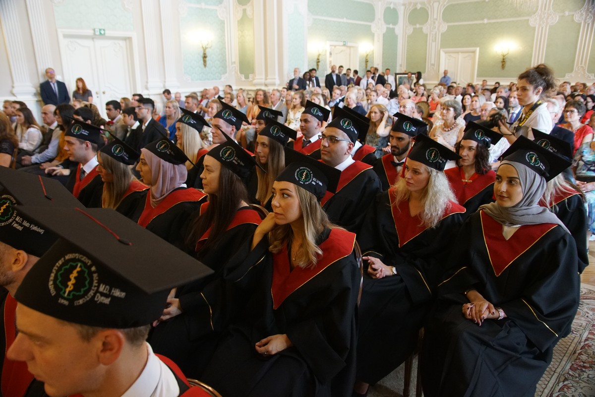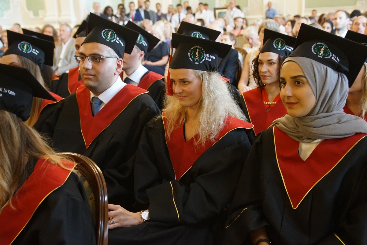 On June 29th in MUB's Aula Magna, took place a Graduation Ceremony of the Faculty of Medicine’s students. Punctually at 12:00, the ceremony started accompanied by The Graduation March Song. The guests were greeted by the Dean of the Faculty of Medicine, Professor Irina Kowalska. Among the invited guests were tutors, heads of the MUB's departments, teachers and graduate’s families.