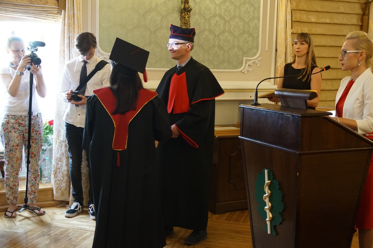 The medical oath was made with the accompaniment of the song Gaude Mater Polonia sung by the MUB’s Choir. Then, vice dean, professor Tomasz Hryszko handed the doctor's diplomas to the MUB’s graduates.