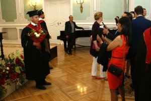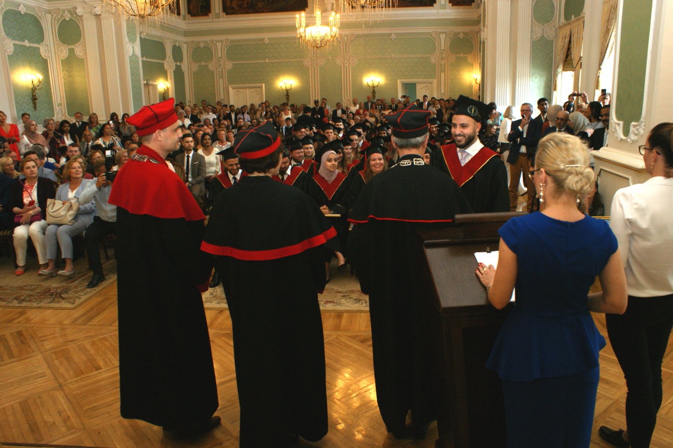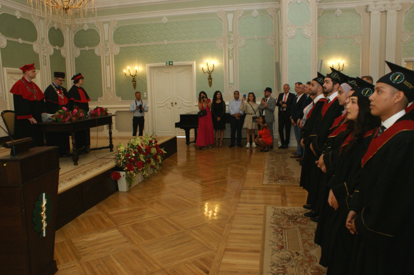 Although the number of graduates were a little over 50, the Aula Magna was filled with guests. Friends and family of the graduates came to the Branicki Palace for this ceremony from all over the world.