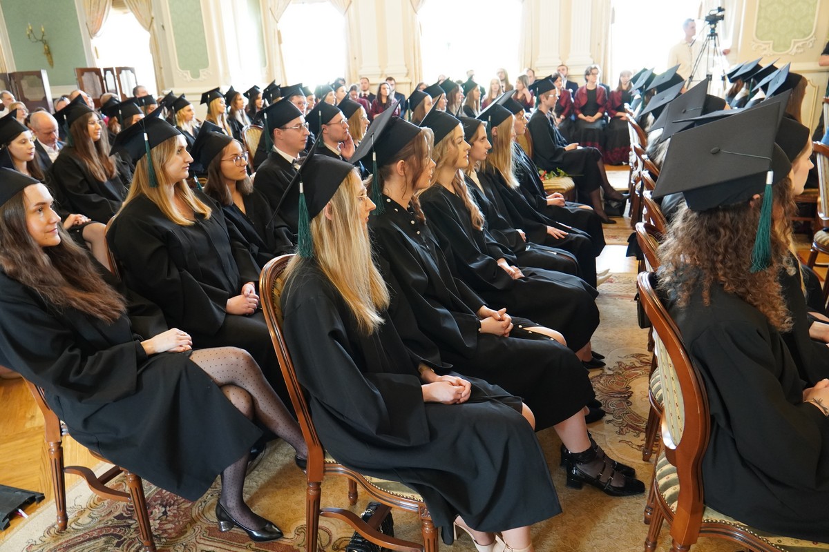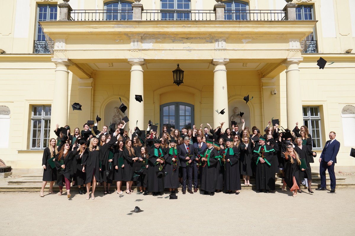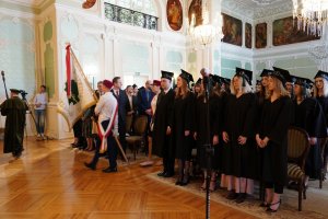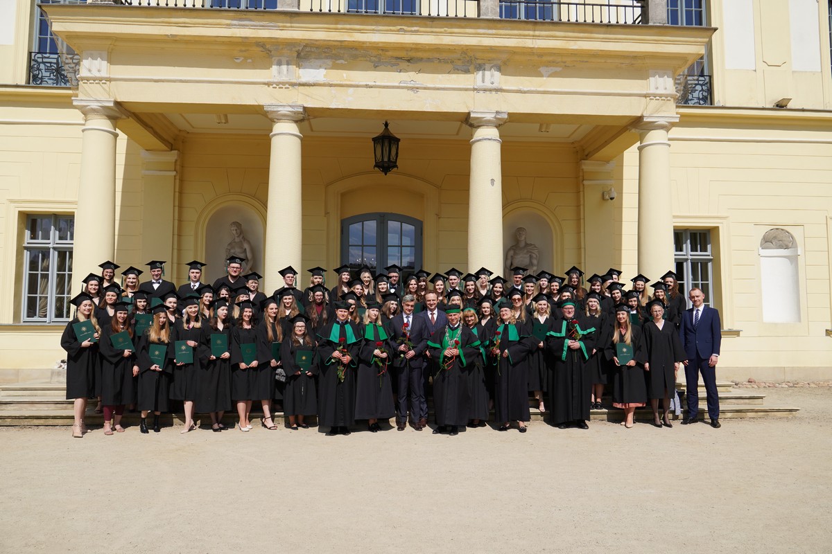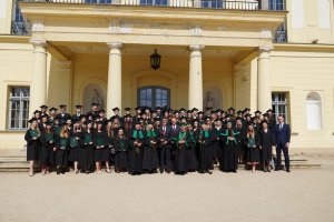 The ceremony was enriched by the performance of the MUB Choir under the direction of prof. Anna Moniuszko. At the end, the graduates put on their caps and posed for a group photo in the palace gardens.