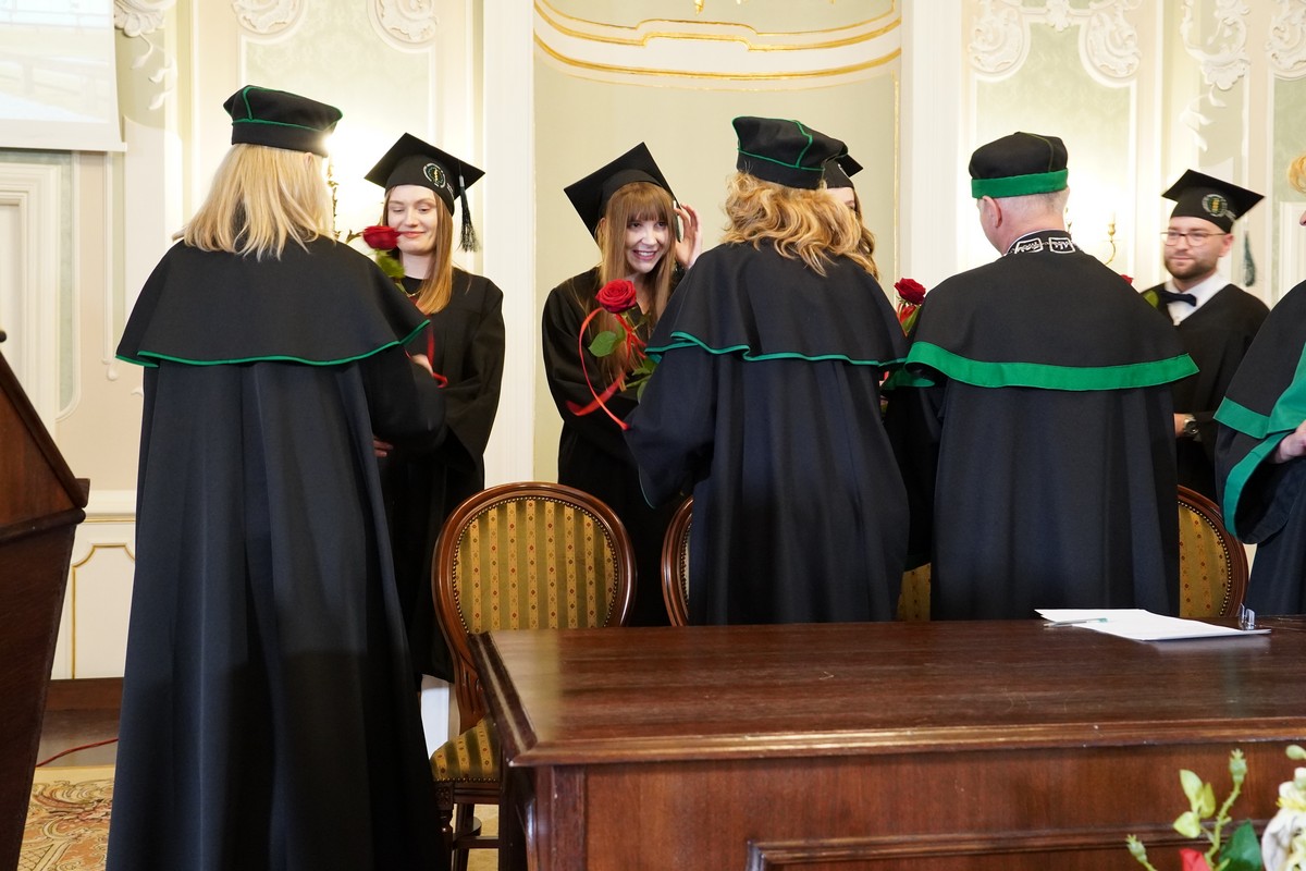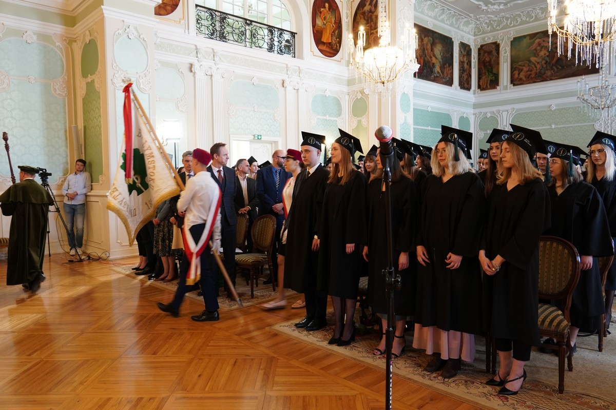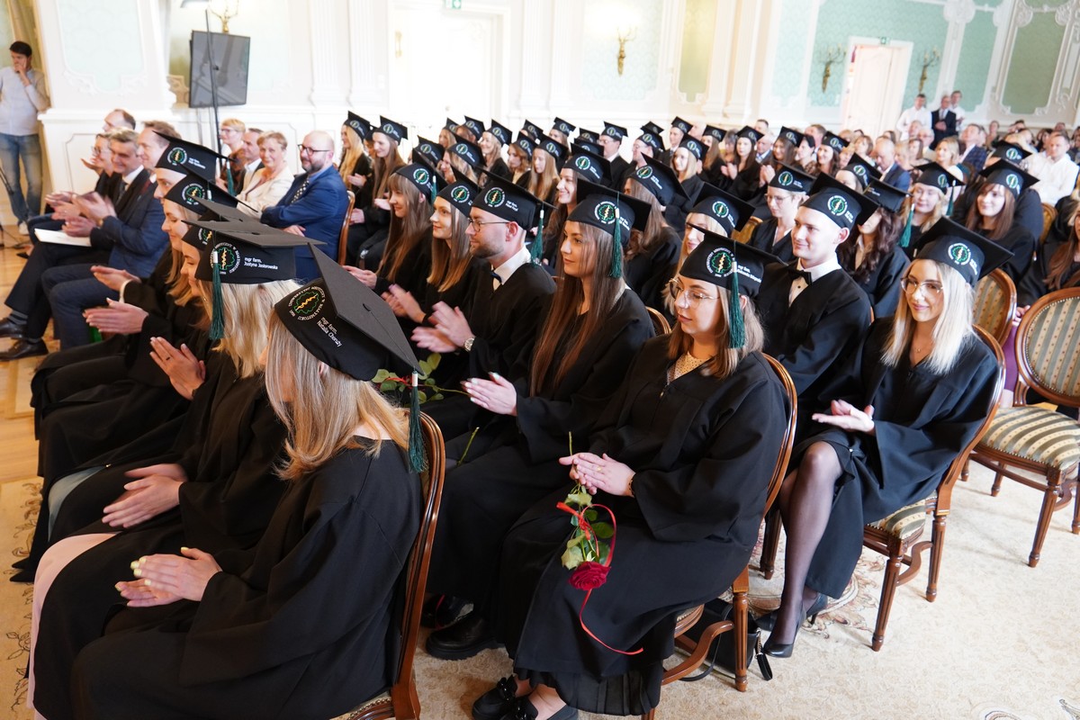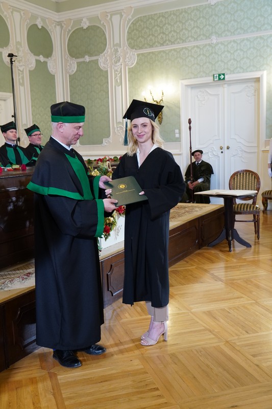 The ceremony was enriched by the performance of the MUB Choir under the direction of prof. Anna Moniuszko. At the end, the graduates put on their caps and posed for a group photo in the palace gardens.