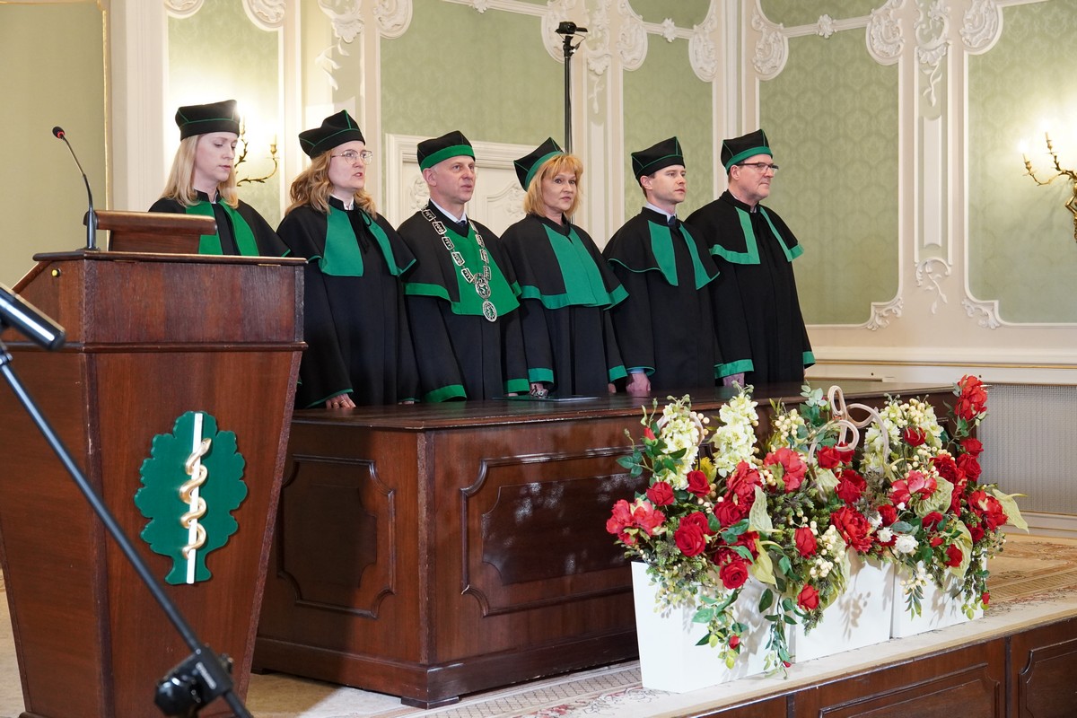 In addition to the graduates, their families, the rector's authorities and deans of the University, the event was attended by invited guests: Provincial Pharmaceutical Inspector in Białystok - Justyna Gosk-Frankowicz MA, President of the District Pharmacy Council in Białystok - Tomasz Sawicki MA, President of the MUB University Council - Jolanta Koszelew PhD, heads of organizational units of the Faculty of Pharmacy with the Department of Laboratory Medicine and a representative of the Student Self-Government - Sylwia Ogniewska.