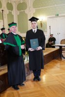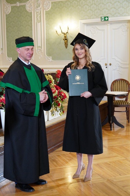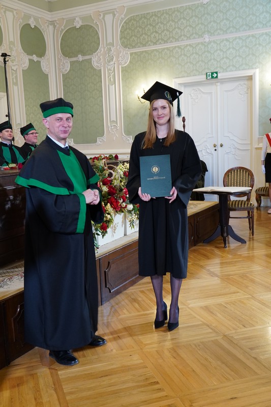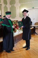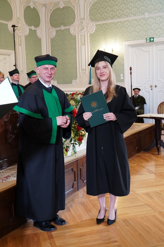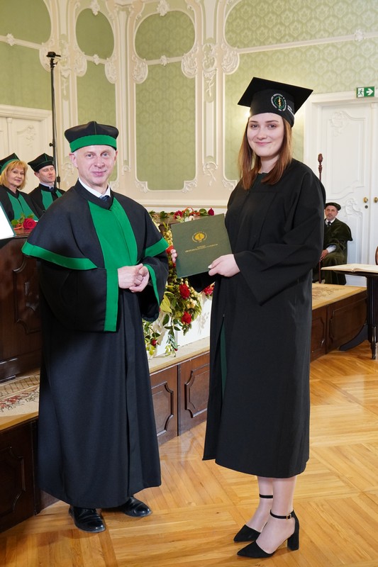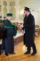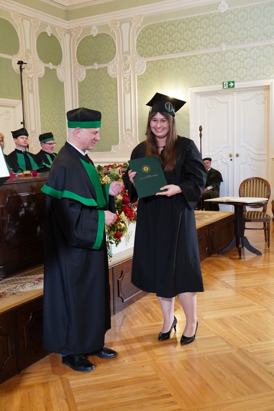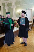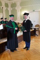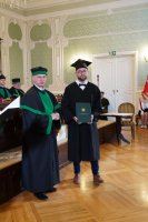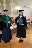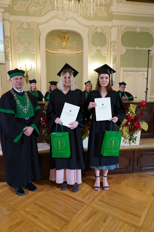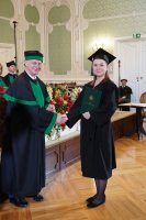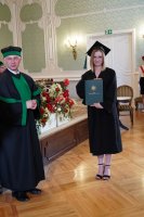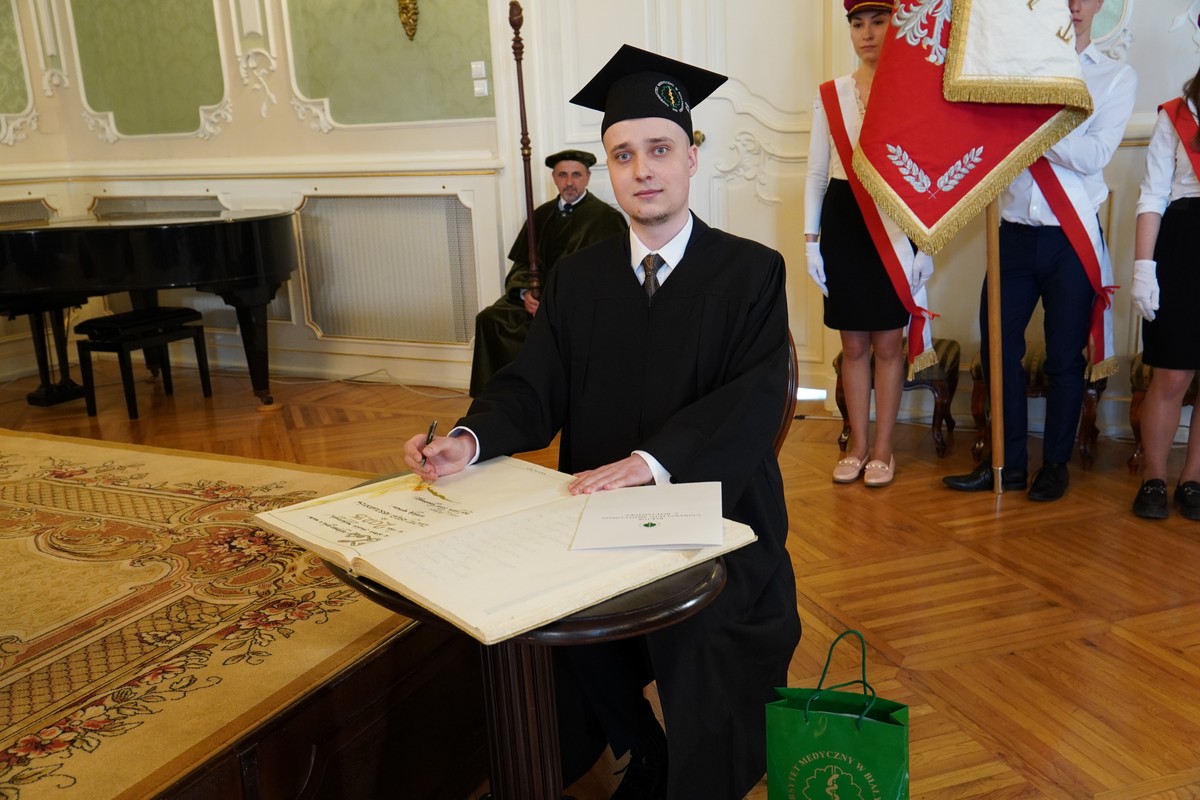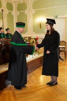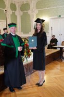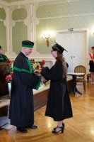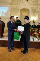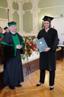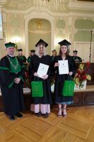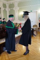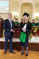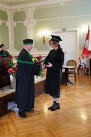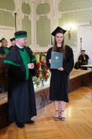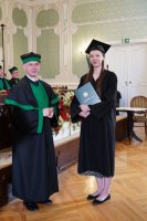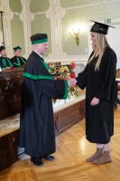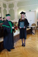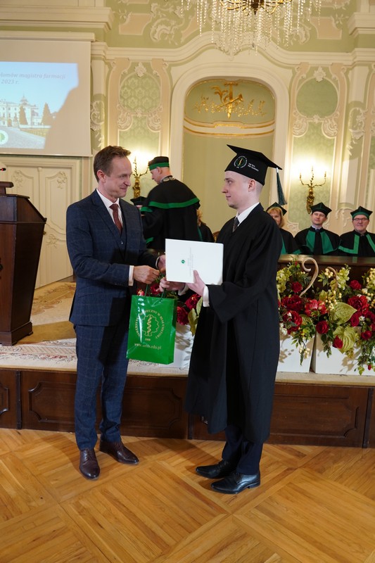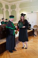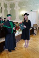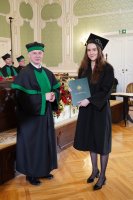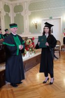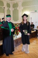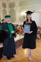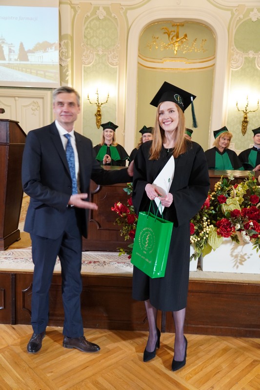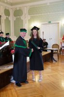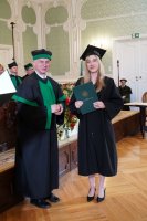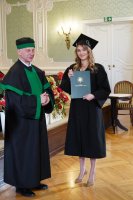 A nice accent of the ceremony was the presentation of the Rector's honorary diploma to Piotr Ryszkiewicz, Master of Pharmacy. He graduated with a very good result and an average grade of 4.95. In accordance with the University's custom, the best graduate was entered into the Golden Book of the MUB. In addition, graduates engaged in active work for the University and the student community: Justyna Jasiorowska and Katarzyna Polkowska, were awarded diplomas and gifts by the Dean.