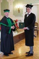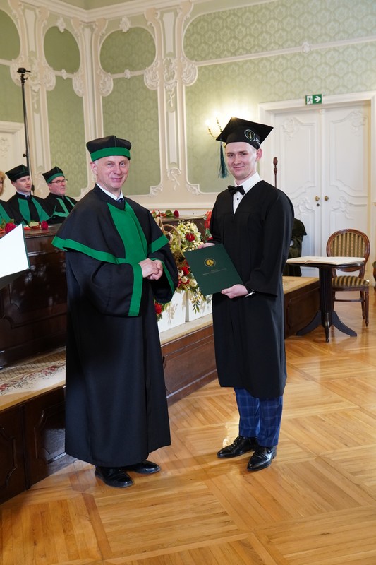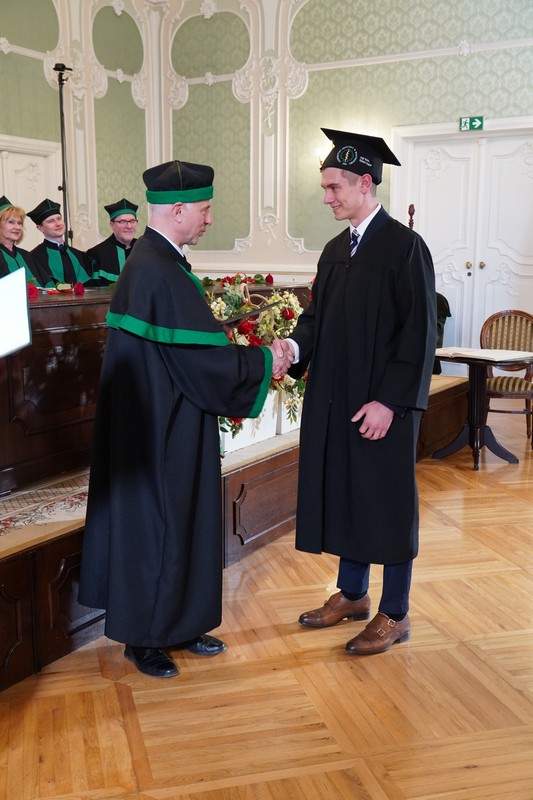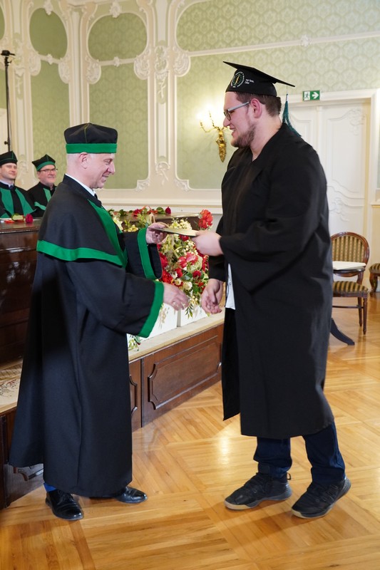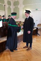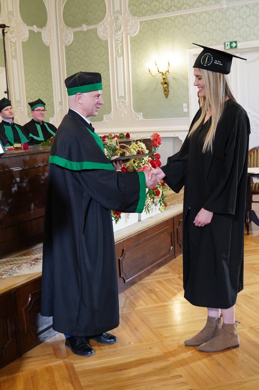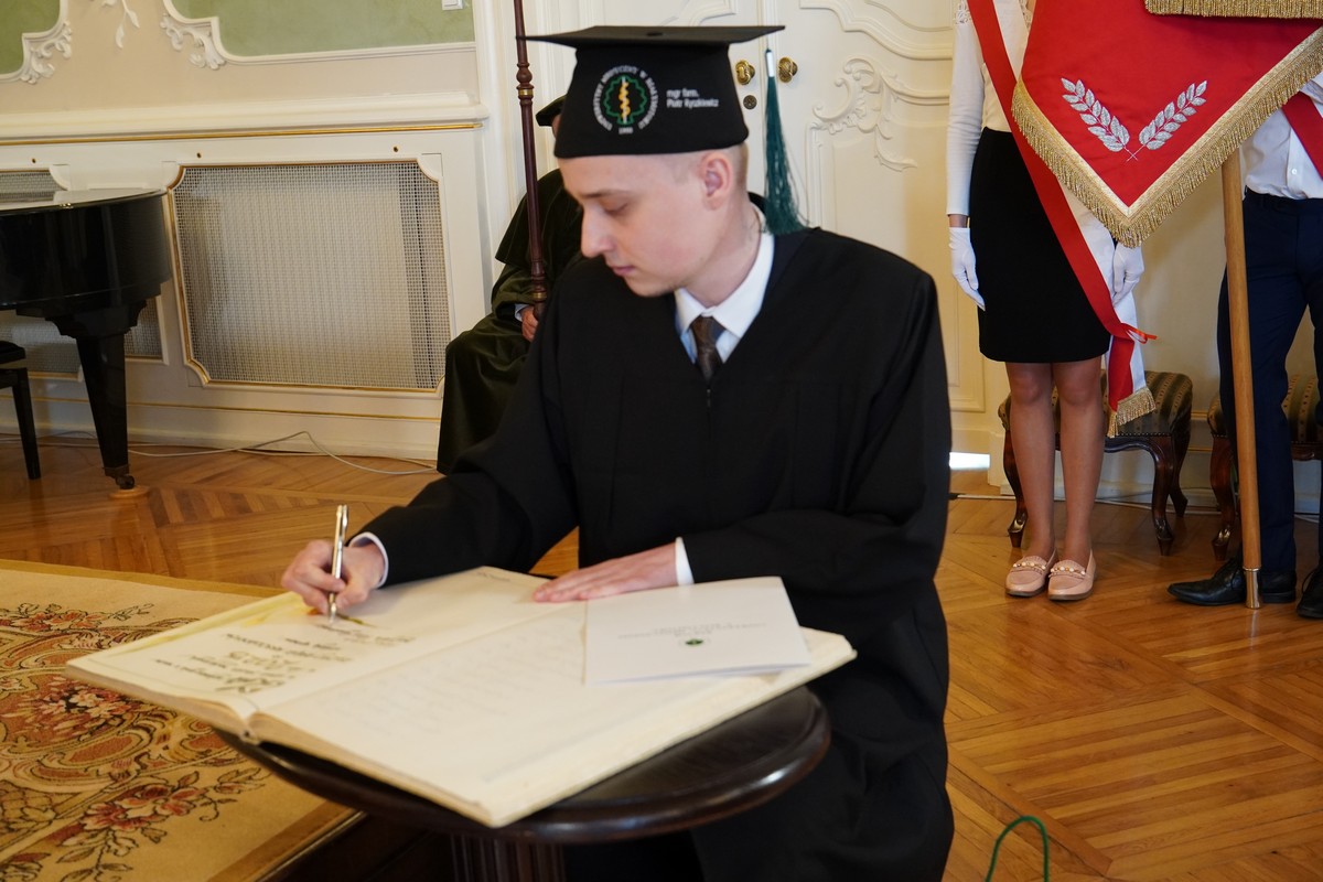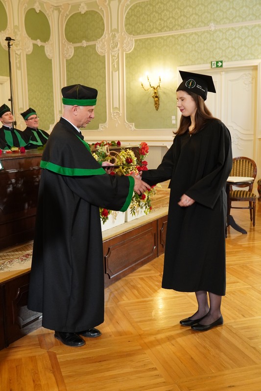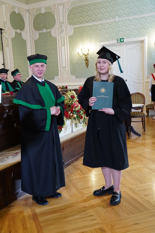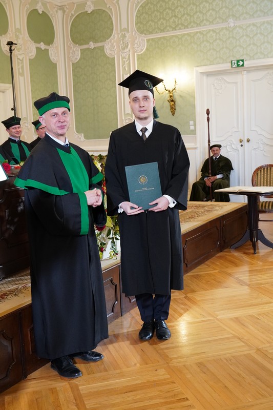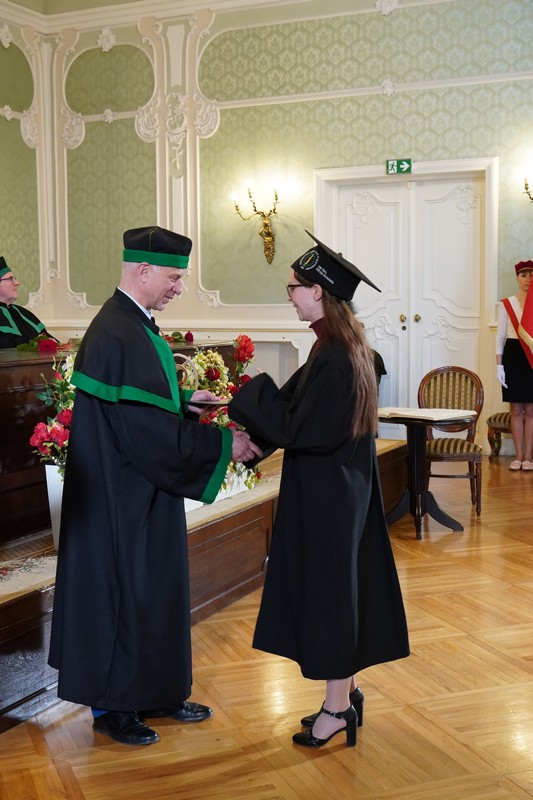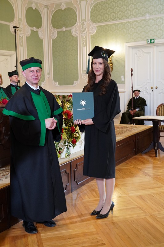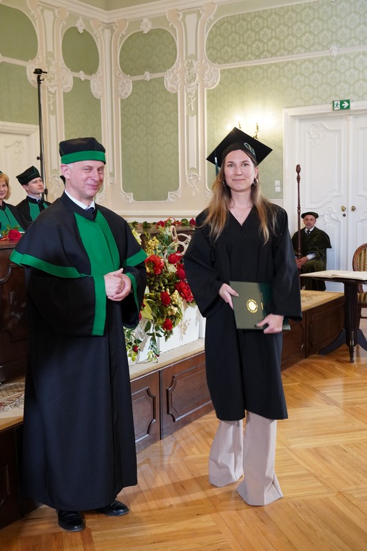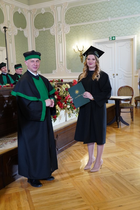 A nice accent of the ceremony was the presentation of the Rector's honorary diploma to Piotr Ryszkiewicz, Master of Pharmacy. He graduated with a very good result and an average grade of 4.95. In accordance with the University's custom, the best graduate was entered into the Golden Book of the MUB. In addition, graduates engaged in active work for the University and the student community: Justyna Jasiorowska and Katarzyna Polkowska, were awarded diplomas and gifts by the Dean.