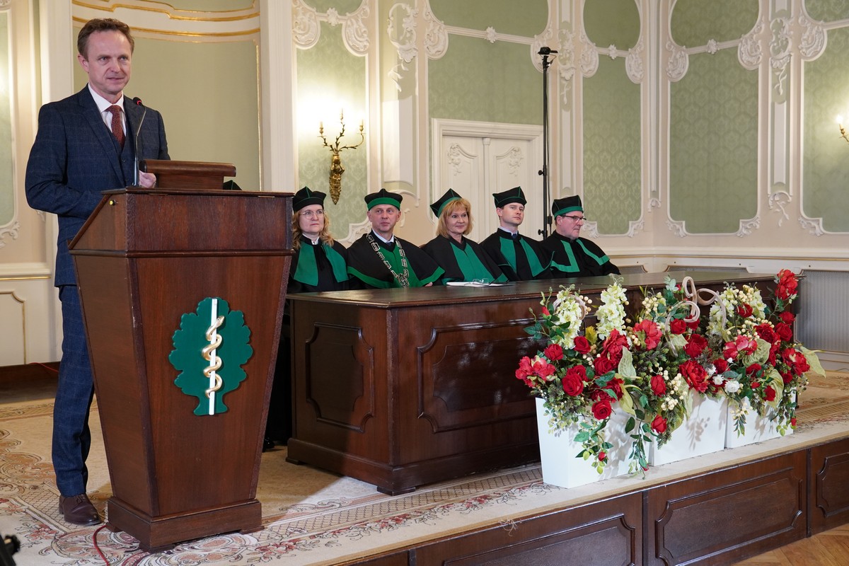 Addressing the graduates, MUB Vice-Rector for Science and Development - prof. dr hab. Marcin Moniuszko wished them success, courage in introducing changes to the Polish health care system and working in the state administration at high levels to be able to reform the system for the benefit of patients. In turn, the MUB Vice-Rector for Education, prof. Adrian Chabowski thanked the graduates for choosing the Medical University of Bialystok.