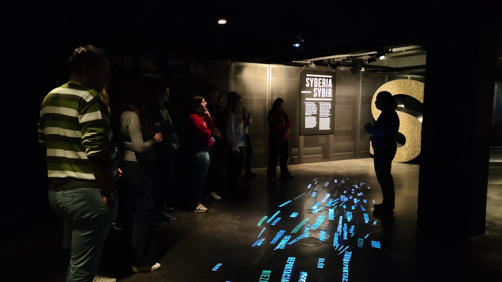 Następnie uczestnicy udali się do Muzeum Pamięci Sybiru. Z zainteresowaniem słuchali Pani przewodnik, która jest certyfikowanym przewodnikiem zewnętrznym po Muzeum Pamięci Sybiru. Tutaj również oprowadzanie przeprowadzone zostało w języku angielskim. Uczestnicy wydarzenia dowiedzieli się o historii Białegostoku i Polski związanej z przymusowym przesiedleniem w głąb Sybiru. Jak można przeczytać na stronie internetowej Muzeum Pamięci Sybiru „Naszą misją jest badanie i upamiętnianie historii ludzi rzuconych przez los w olbrzymią otchłań rozciągającą się między górami Ural a Oceanem Spokojnym, w otchłań ludzkiego upadku i nieludzkiej wręcz siły przetrwania: gdzieś między Syberię a Sybir.