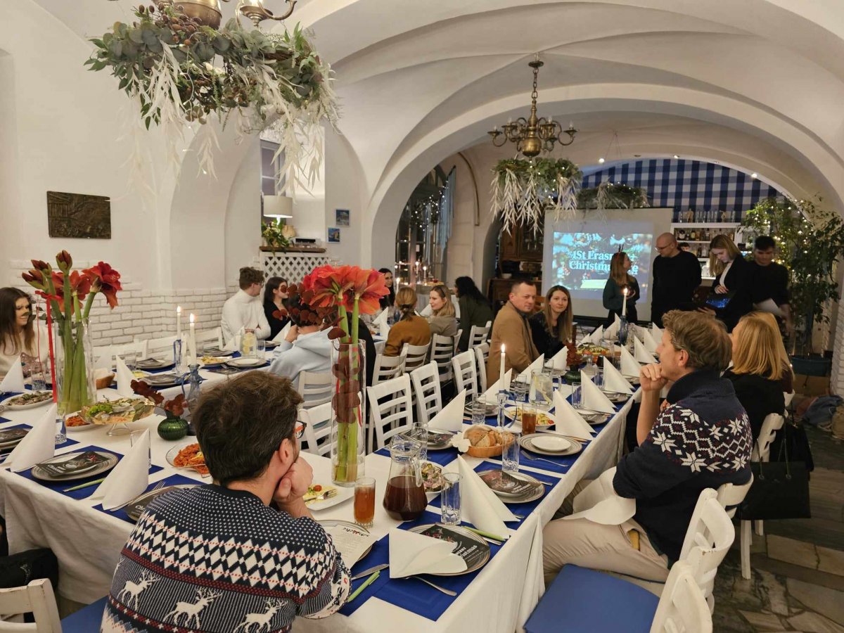 Wieczór obfitował w pyszne wigilijne potrawy, ciepłe rozmowy i wiele radości. Dzięki integracyjnym grom i zabawom z nagrodami mieliśmy okazję lepiej się poznać i wspólnie cieszyć magiczną atmosferą Świąt. Dla zagranicznych studentów i praktykantów, którzy przyjechali na naszą uczelnię w ramach Programu była to także szansa na zapoznanie się z polskimi tradycjami i potrawami świątecznymi.