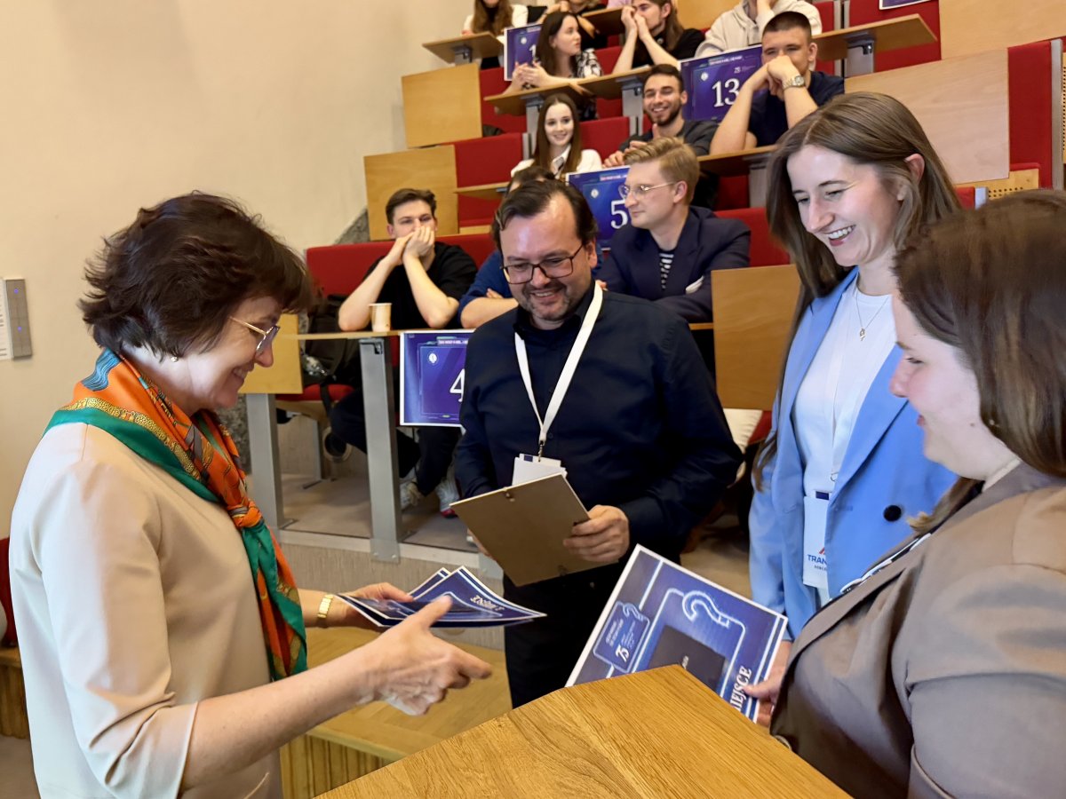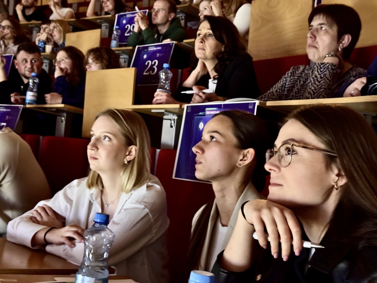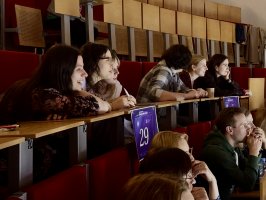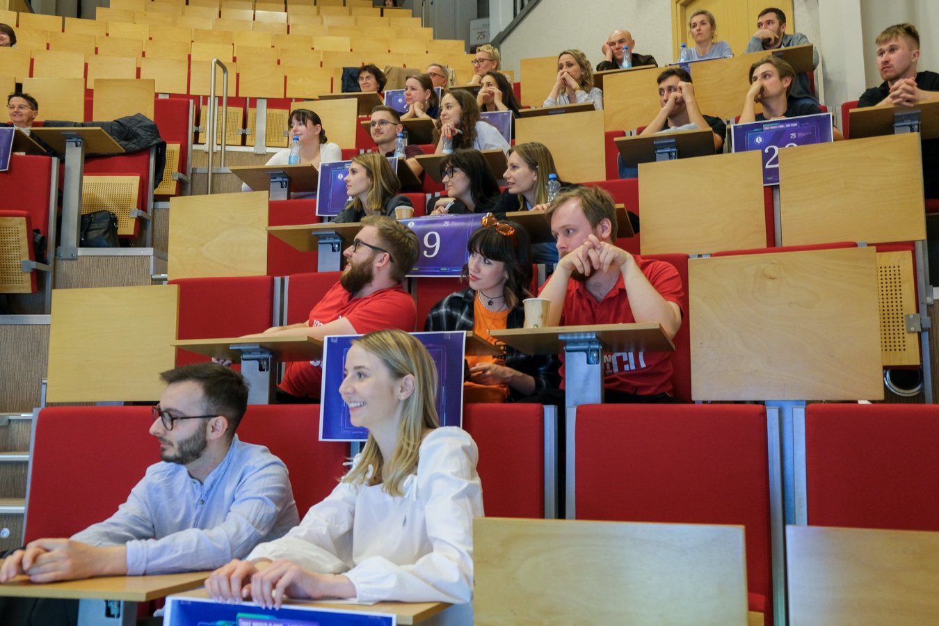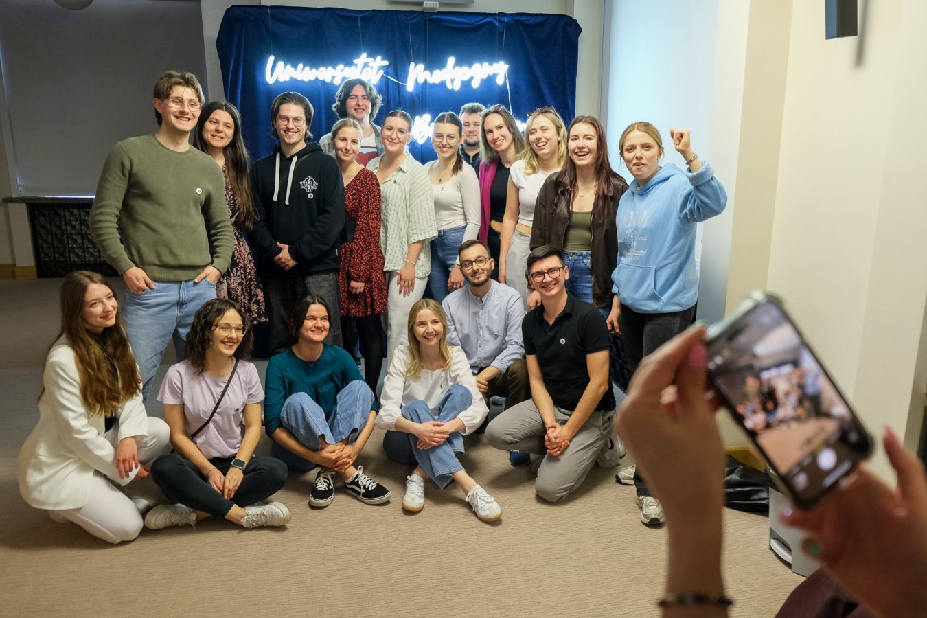 W czwartek 3 marca 2025 aula „Beczka” zamieniła się w pole intelektualnej rywalizacji. Aż 30 drużyn – złożonych ze studentów, wykładowców i pracowników UMB – stanęło do walki w quizie z wiedzy ogólnej oraz wiedzy o naszej Uczelni. Pytania były wymagające i podchwytliwe – średni wynik wyniósł 22,1 punktu na 50 możliwych. Dogrywkę o 2. miejsce rozstrzygnęło pytanie o liczbę pokoi w Hotelu Ritz w Białymstoku (poprawna odpowiedź: 50).