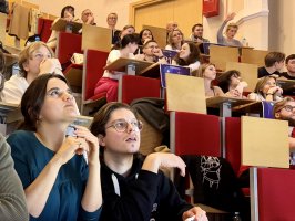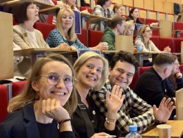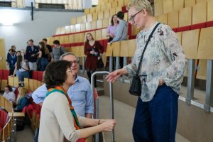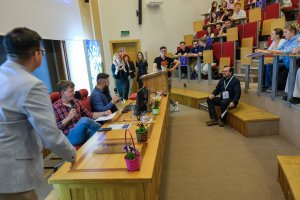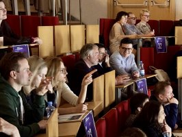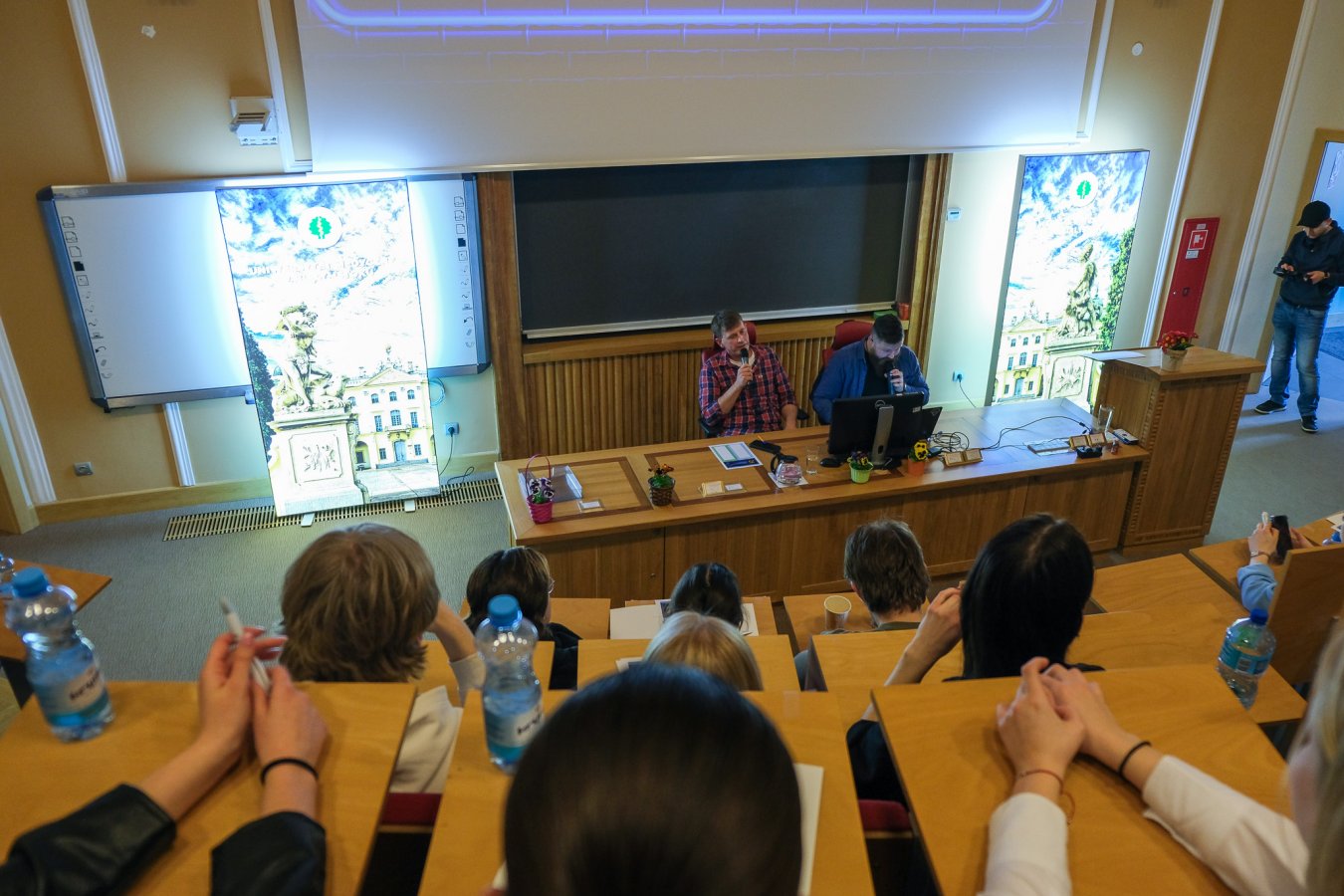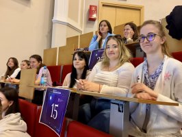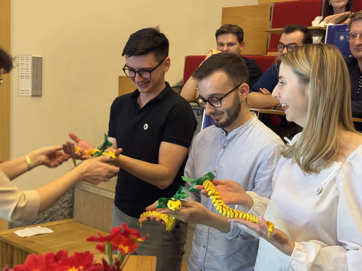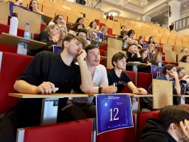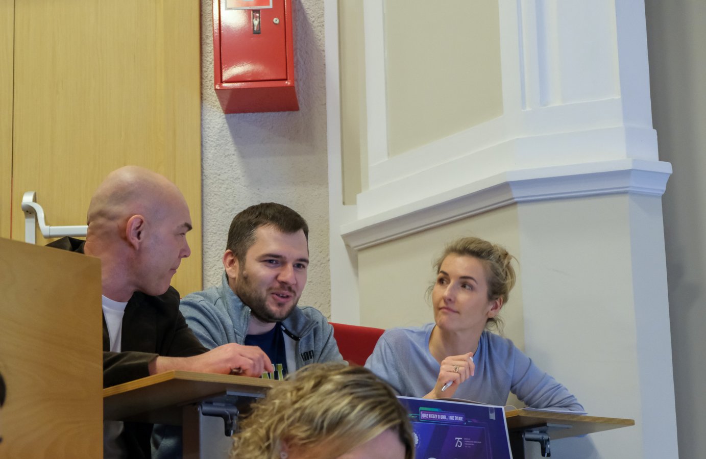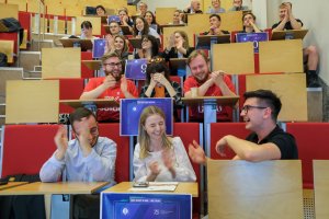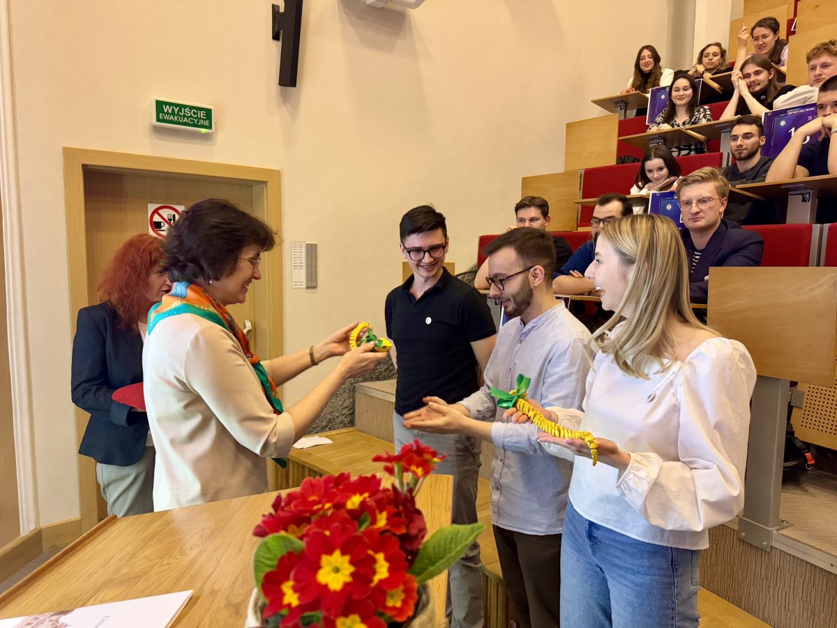 W czwartek 3 marca 2025 aula „Beczka” zamieniła się w pole intelektualnej rywalizacji. Aż 30 drużyn – złożonych ze studentów, wykładowców i pracowników UMB – stanęło do walki w quizie z wiedzy ogólnej oraz wiedzy o naszej Uczelni. Pytania były wymagające i podchwytliwe – średni wynik wyniósł 22,1 punktu na 50 możliwych. Dogrywkę o 2. miejsce rozstrzygnęło pytanie o liczbę pokoi w Hotelu Ritz w Białymstoku (poprawna odpowiedź: 50).