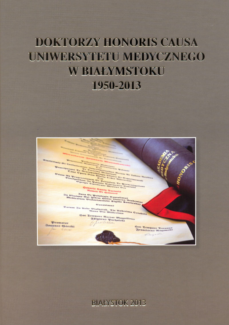 "Doktorzy Honoris Causa Uniwersytetu Medycznego w Białymstoku 1950-2013" pod redakcją: prof.dr hab. L. Chyczewskiego, dr M. Grassmann, mgr P. Radziejewskiego i mgr M. Piszczatowskiej to trzecia publikacja z serii Wydawnictw Jubileuszowych Uniwersytetu Medycznego w Białymstoku.