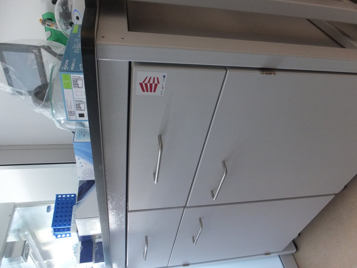 - wyposażenie meblowe i laboratoryjne Zakładu Laboratoryjnej Diagnostyki Klinicznej (w tym: biurko dwustanowiskowe, zabudowy blatowe robocze – 2 szt., zabudowa aktowa wisząca, słupek aktowy, szafa garderobiana, fotel biurowy – 2 szt., zabudowy laboratoryjne – 6 szt.).