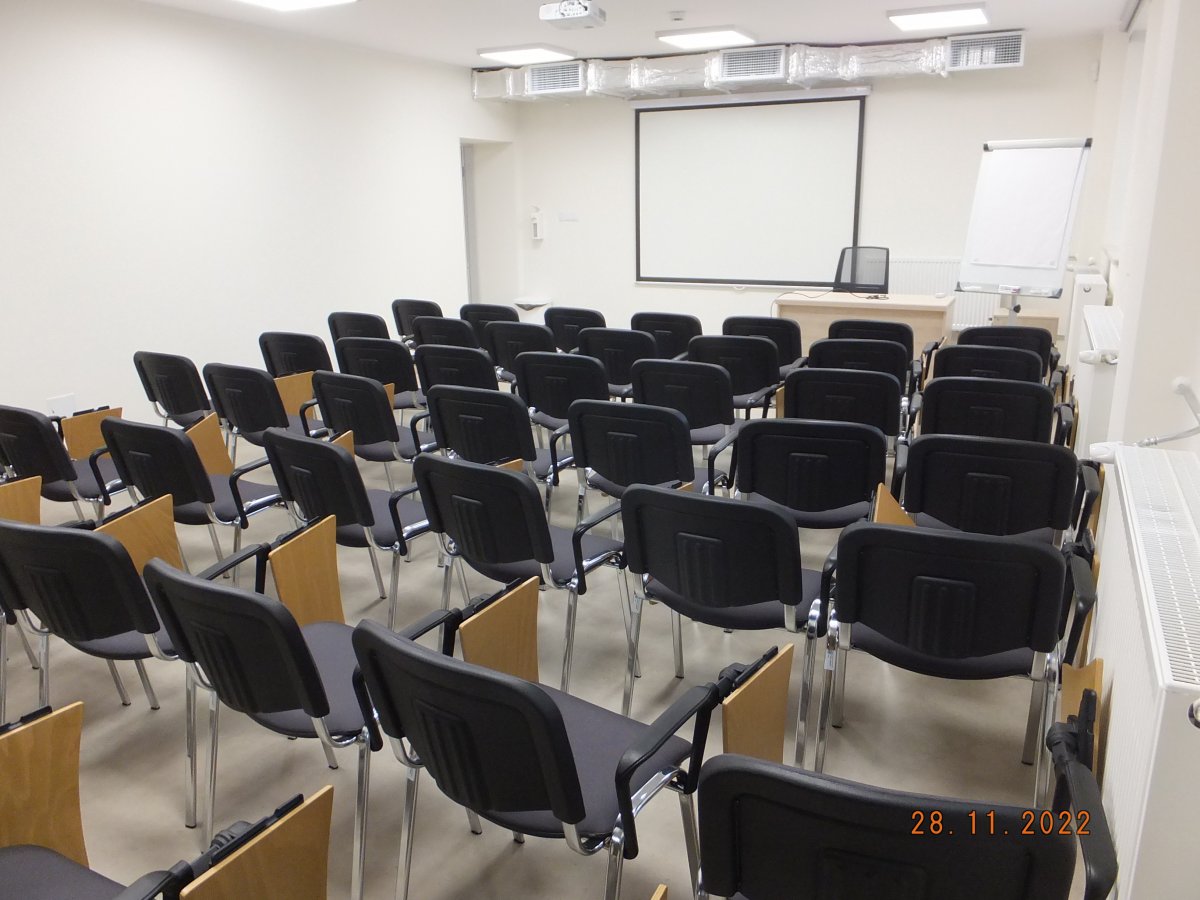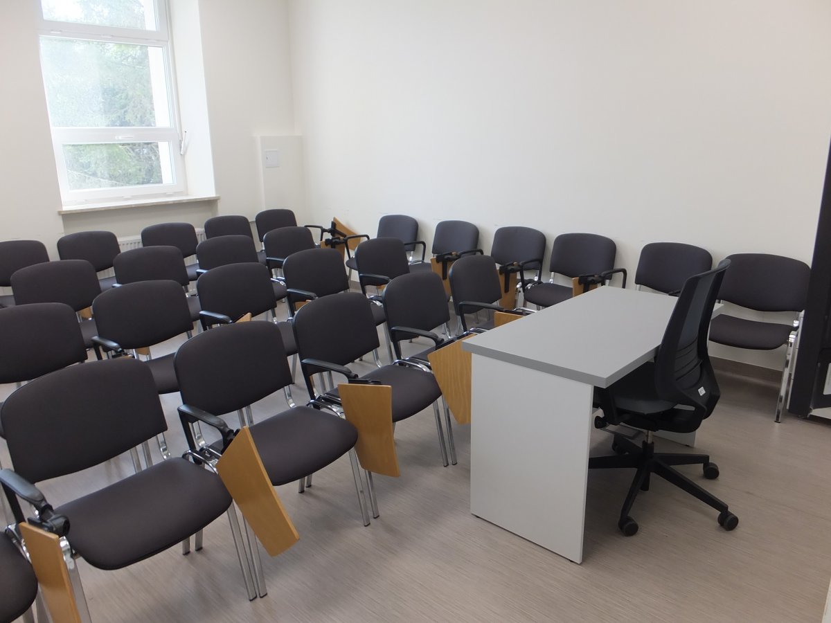 2) powstało pięć nowych sal dydaktycznych, w tym: dwie 20-osobowe, dwie 30-osobowe i jedna 50-osobowa, co pozwoliło na stworzenie 150 dodatkowych miejsc dydaktycznych,