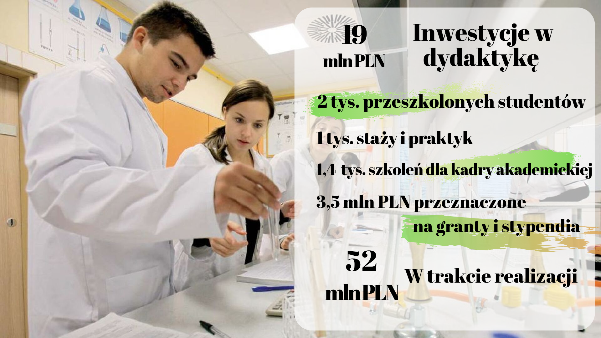 Trudno nie rozpocząć przeglądu inicjatyw dofinansowanych z funduszy UE od tych, które są najbardziej widoczne, czyli inwestycji budowlanych. Tu rzeczywiście - można śmiało powiedzieć, że działania przeprowadzone przez UMB w ciągu ostatnich 15 lat zmieniły oblicze uczelni. Euroregionalne Centrum Farmacji, Centrum Badań Innowacyjnych, Centrum Symulacji Medycznej - to przykłady największych i najbardziej rozpoznawalnych inwestycji w infrastrukturę powstałych dzięki funduszom unijnym. Budowa i unowocześnienie jednostek oraz zakup aparatury na kwotę ponad 150 milionów PLN umożliwiły realizację projektów naukowo-badawczych, wpływając istotnie na zwiększenie potencjału uczelni. Dziś trudno sobie wyobrazić naszą uczelnię bez wspomnianych inwestycji, a ich znaczenie w kontekście rozwoju dydaktyki i nauki jest nie do przecenienia. Pamiętajmy, że infrastruktura i aparatura to tylko narzędzia, które - chociaż absolutnie niezbędne - nie miałyby racji bytu, gdyby nie zostały wykorzystane w celu osiągnięcia znaczących, długofalowych efektów.
