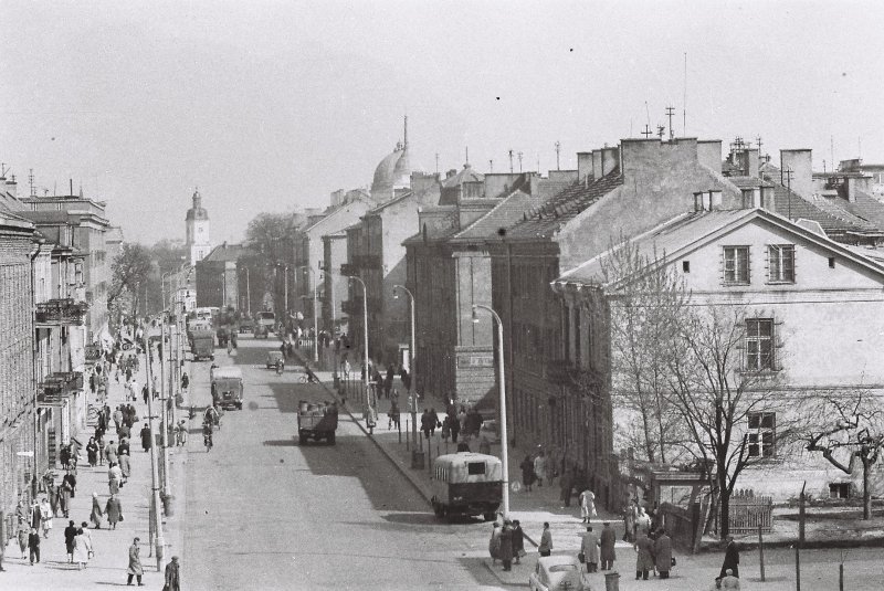I trzydzieści lat później dostrzegamy Andrzejka, który autobusem komunikacji miejskiej przejeżdża przez całą Lipową, od Kościoła Świętego Rocha aż do Kościoła Farnego.