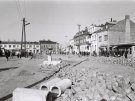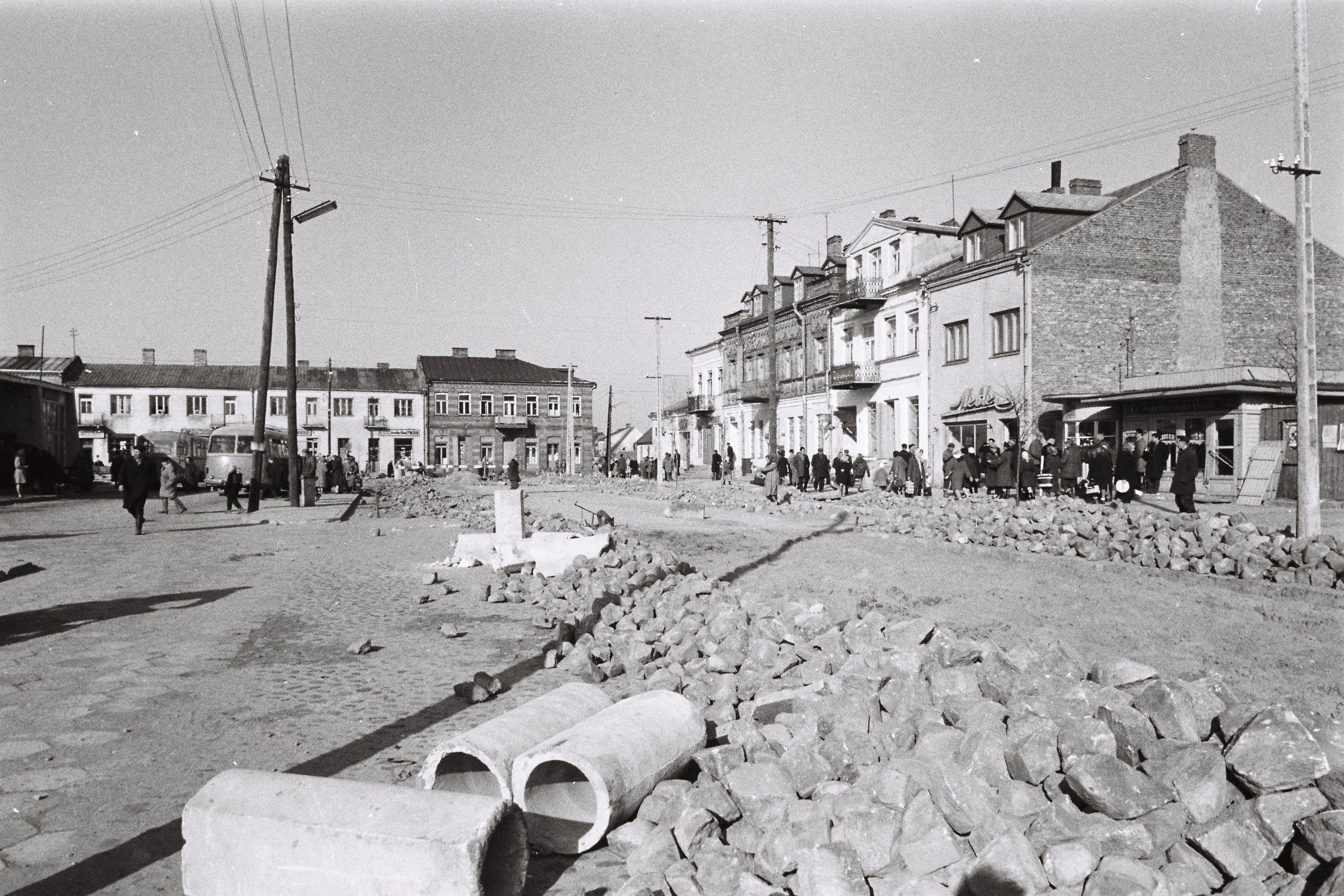 Sporo tego, bo w mieście po wojnie jest puste centrum z resztkami spalonych kamienic.