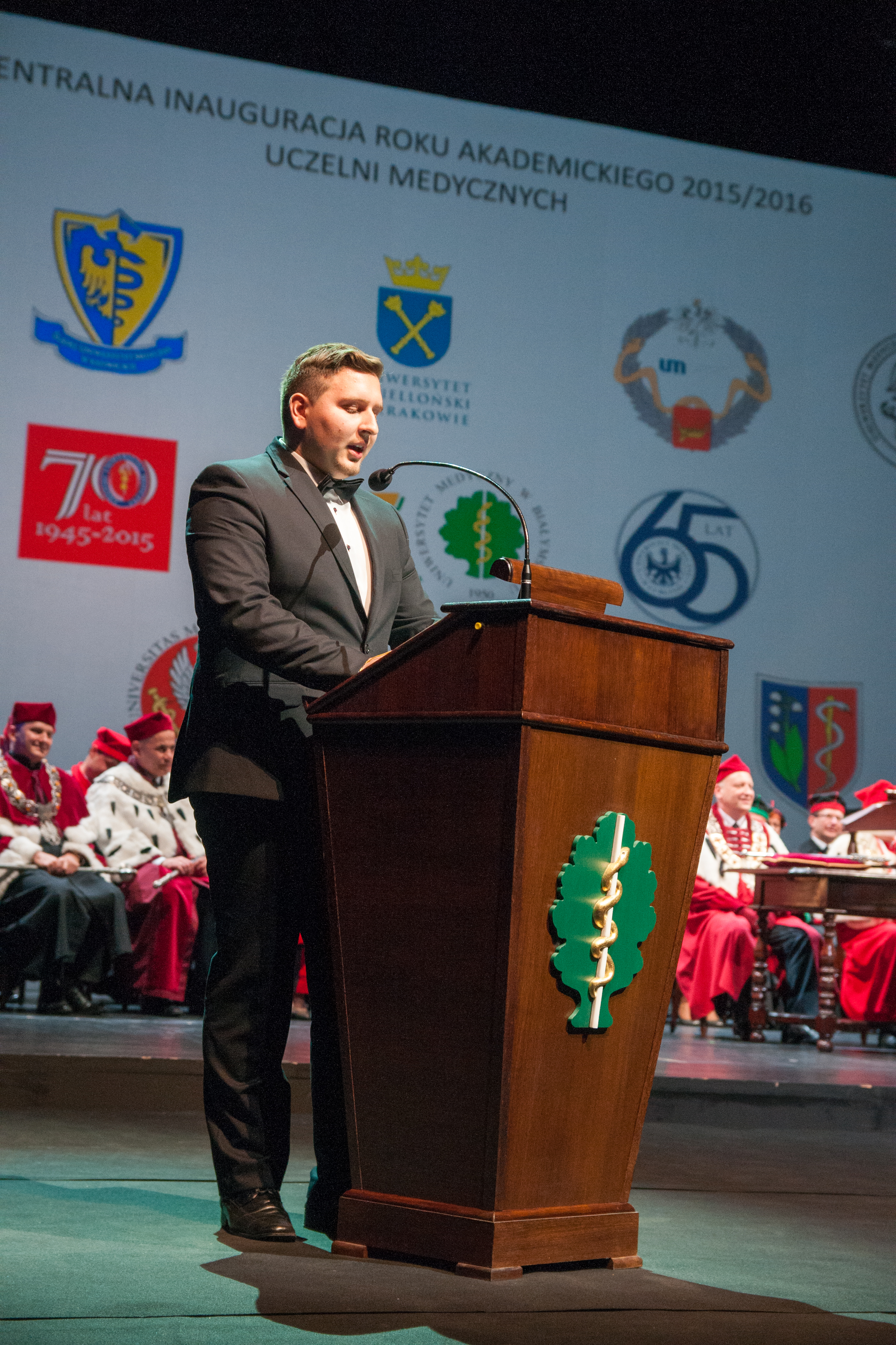 Chciałbym bardzo serdecznie powitać wszystkich studentów w nowym roku akademickim 2015/2016, a zwłaszcza studentów I roku wszystkich uczelni medycznych. Osobiście do dziś pamiętam swoje pierwsze zajęcia na farmacji i związane z nimi obawy oraz stres. Studia to czas samodoskonalenia, pokonywania własnych słabości i wkraczania w dorosłe życie. Życzę więc wam samych sukcesów i najlepszych wyników. Byście byli wzorem dla nowych roczników.