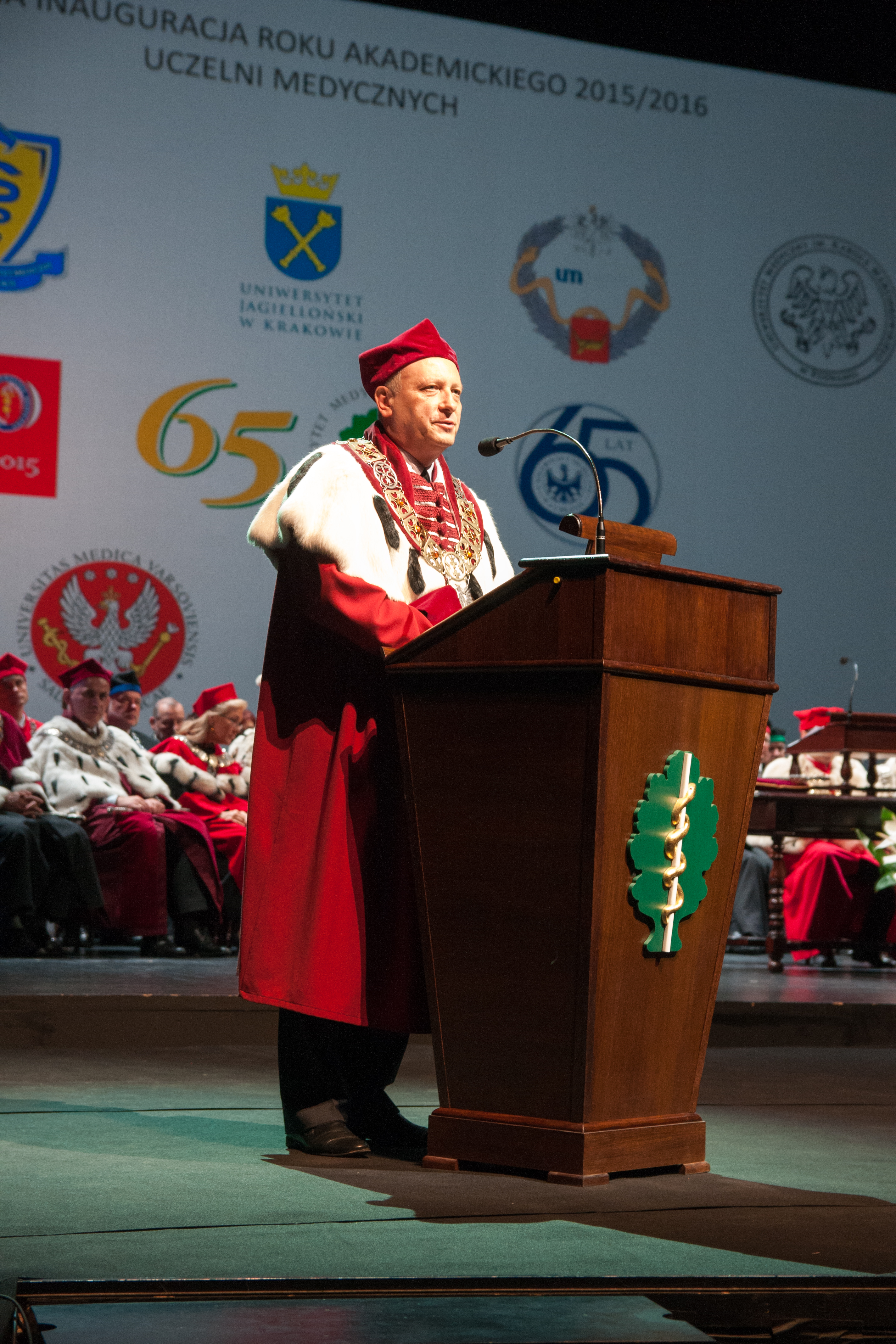 Zawracam się do studentów. Chciałbym wam pogratulować, że wybraliście wspaniały uniwersytet medyczny do swojego kształcenia i zdobywania zawodu. Na pewno nie będzie łatwo. Będą liczne zwątpienia. Może już niedługo będziecie mówić, że studia tu to nie był dla was najlepszy okres. Jednak po latach stwierdzicie, że to jednak był wasz najpiękniejszy okres życia. To w tym czasie poznacie wspaniałych przyjaciół, tu poznacie wspaniałych nauczycieli, którzy będą dla was stanowić wzorzec postępowania oraz tego, jak należy spełniać tę misję, którą wzięliście na siebie.