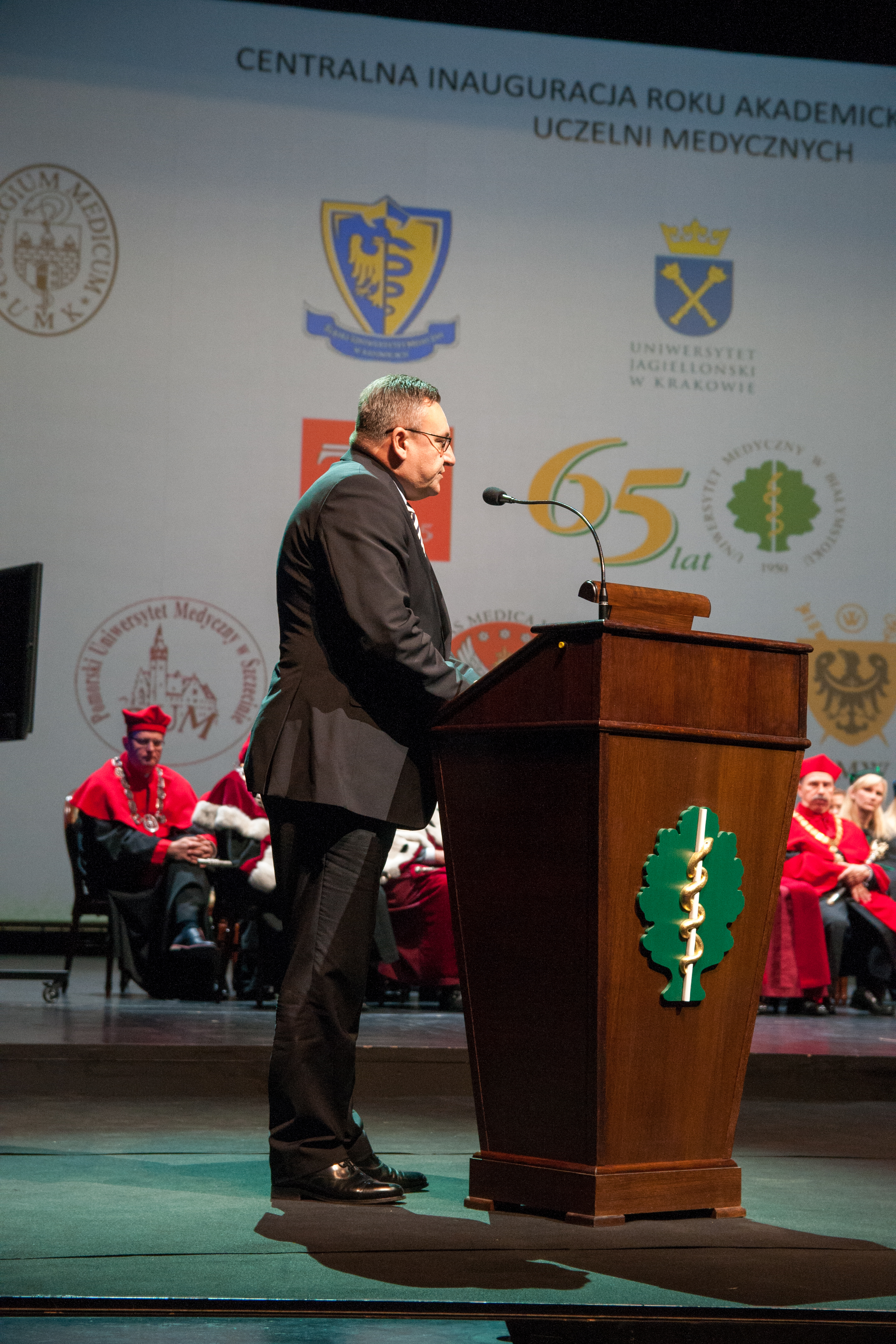 Rozpoczęcie roku akademickiego to wielkie święto dla uczelni i miasta. Święto tym większe, że to centralna inauguracja roku akademickiego uczelni medycznych. Czujemy się wyróżnieni i zaszczyceni tym dniem. Dziękujemy też gościom z kraju i zagranicy, że odwiedzili nasze miasto. (…) 65 lat to żaden wiek, to nawet nie jest wiek emerytalny. To wiek pełnej twórczości, w tym wypadku naukowej.