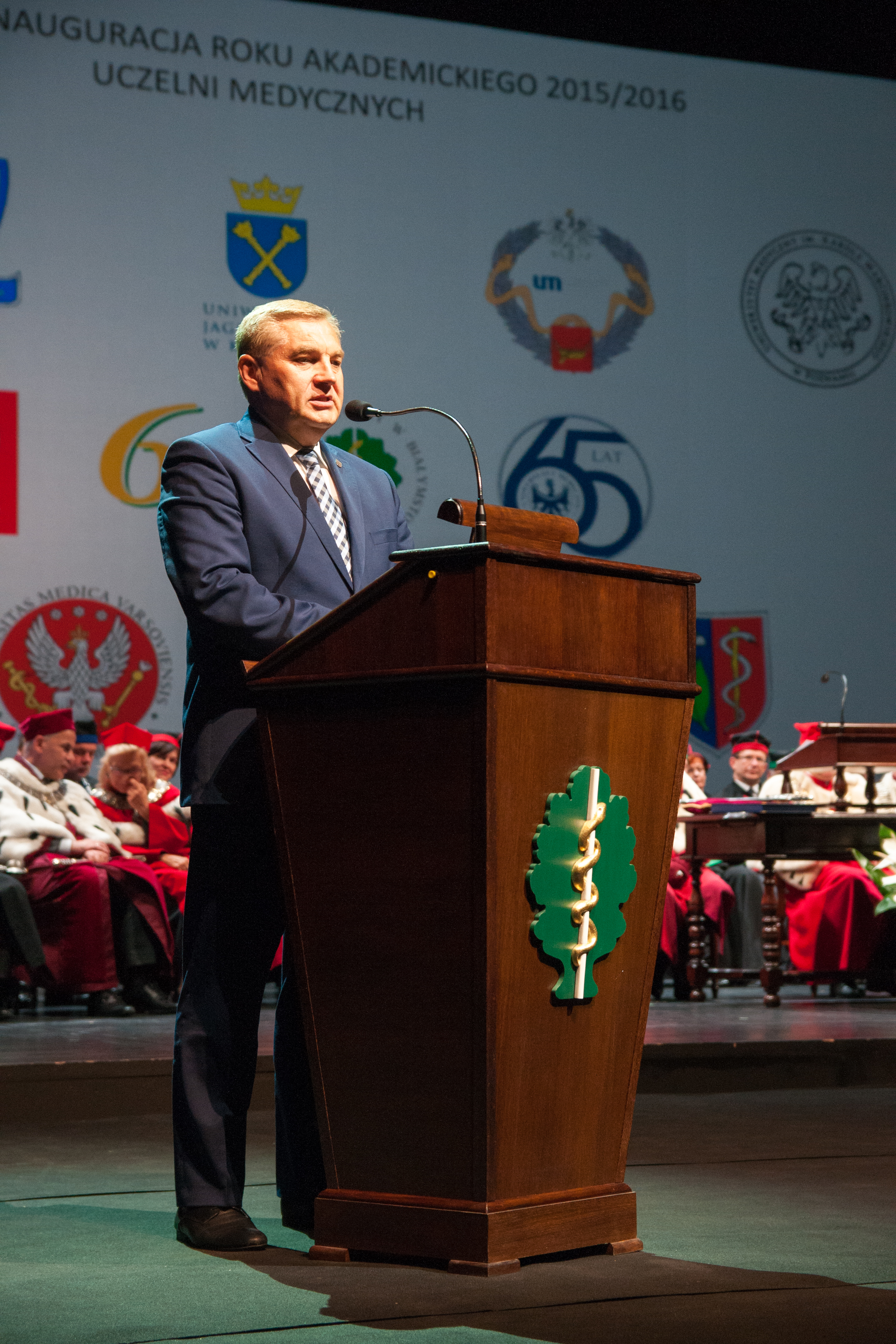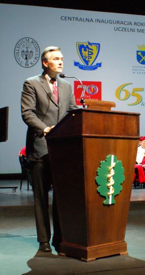 Inauguracja skłania mnie też do takiej refleksji. Myślałem, że aby zostać politykiem trzeba być dobrym człowiekiem. Teraz tu podczas uroczystości, pan rektor stwierdził, że żeby zostać lekarzem trzeba być dobrym człowiekiem. Dlatego wszystkim obecnym tu lekarzom gratuluję, że są dobrymi i wspaniałymi ludźmi.