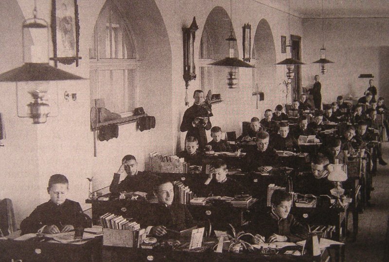 Po zakończeniu poobiedniej rekreacji przechodziliśmy do sali zwanej „muzeum”, gdzie odrabiało się lekcje. Każdy z nas miał biureczko z odchylanym blatem, pod którym trzymał zeszyty, książki i korespondencję. Dwie pierwsze popołudniowe godziny przeznaczone były na naukę. Porządku i spokoju pilnował krążący z brewiarzem w ręce prefekt. Miał buty na specjalnej miękkiej gumowej podeszwie, co pozwalało bezszmerowo spacerować po sali i nie rozpraszać uwagi uczniów podczas nauki. Dopiero podczas trzeciej, ostatniej godziny przed kolacją, można było zająć się korespondencją, albo czytaniem książki. Z „muzeum” nie było można zabierać ani książek, ani zeszytów. Podczas odrabiania lekcji panowała cisza. Jeżeli ktoś chciał pójść do toalety, nie zgłaszano tej potrzeby głosem, lecz kawałkiem skręconego w rurkę papieru i podniesieniem ręki, czekając aż prefekt zauważy i pozwoli wyjść. Następny uczeń mógł wyjść dopiero wtedy, jak wrócił poprzedni.