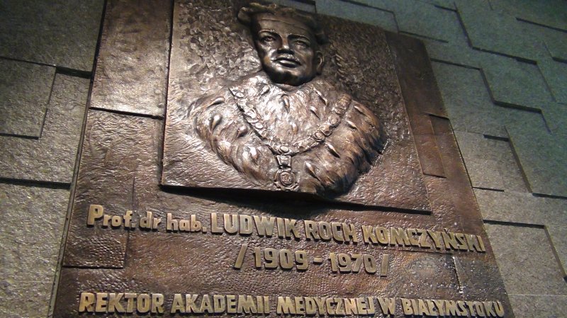 W gmachu Collegium Patologicum uroczyście odsłonięto tablicę pamiątkową prof. Ludwika Komczyńskiego, byłego rektora i inicjatora budowy gmachu. Swojego byłego szefa wspomina prof. Lech Chyczewski
